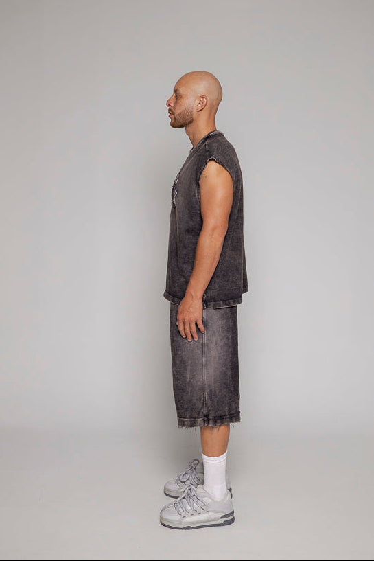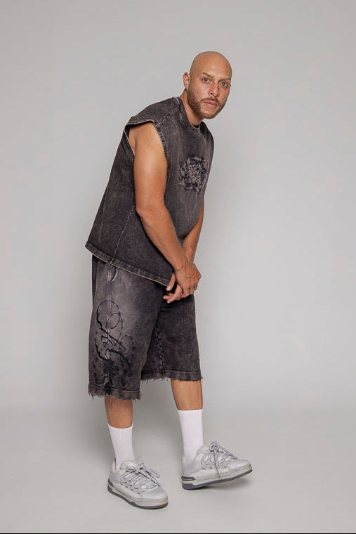 Bermuda tipo jorts unisex en burda, tiene cintura enresortada para un ajuste cómodo. Tiene cordón ajustable cintura, fáciles de usar con nuestras camisetas de hombre.