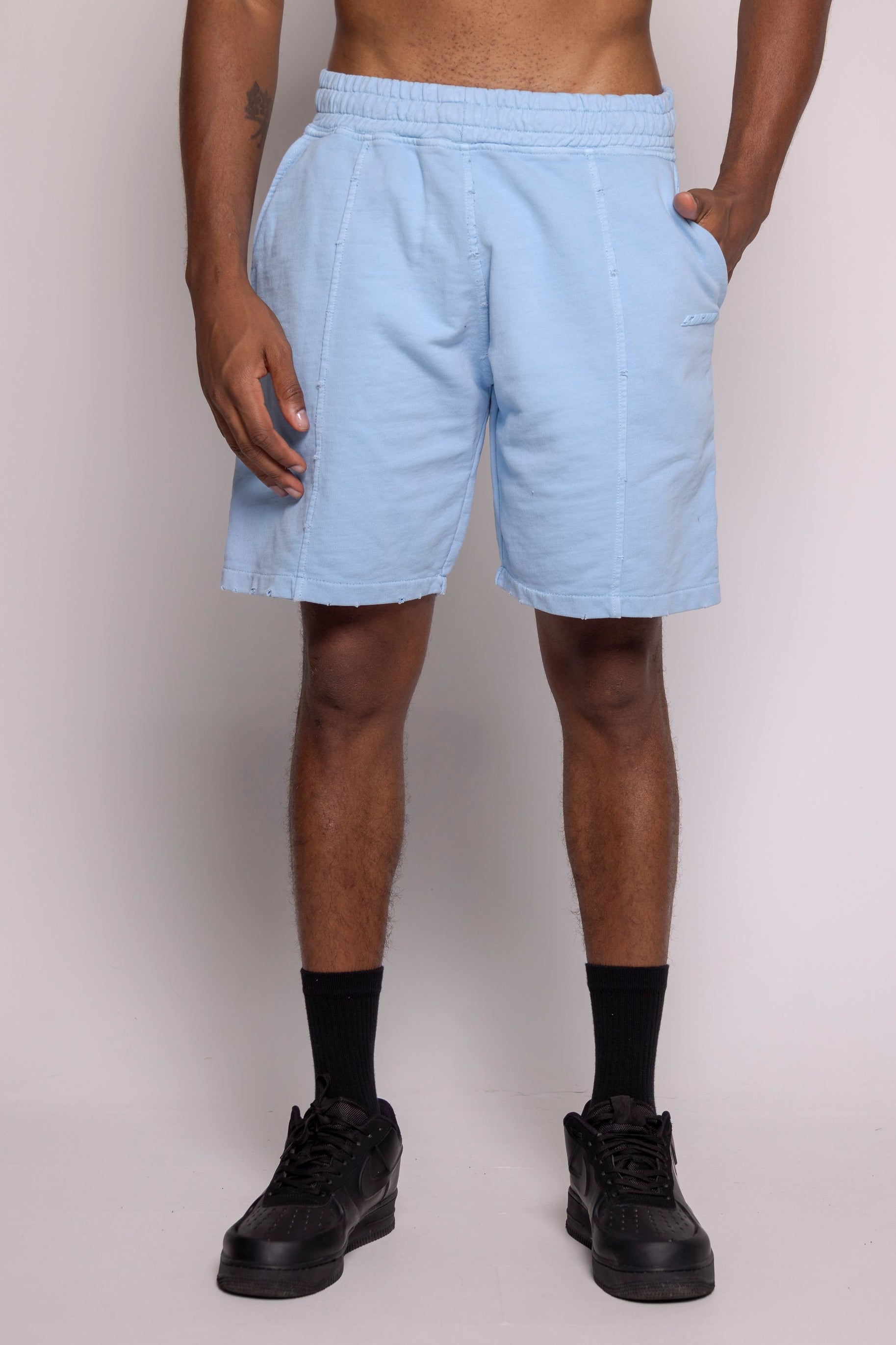 Bermuda unisex en burda con cortes rústicos efecto rotos, tiene cintura con resorte para un ajuste cómodo. Tiene cordón ajustable cintura, fáciles de usar con nuestras camisetas de hombre.