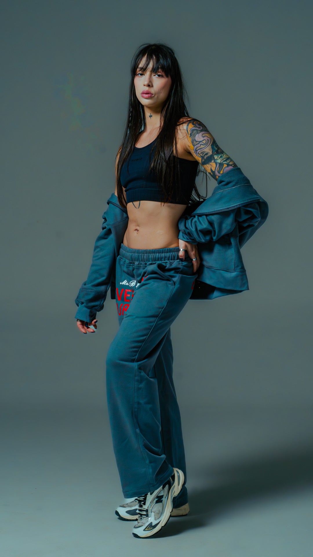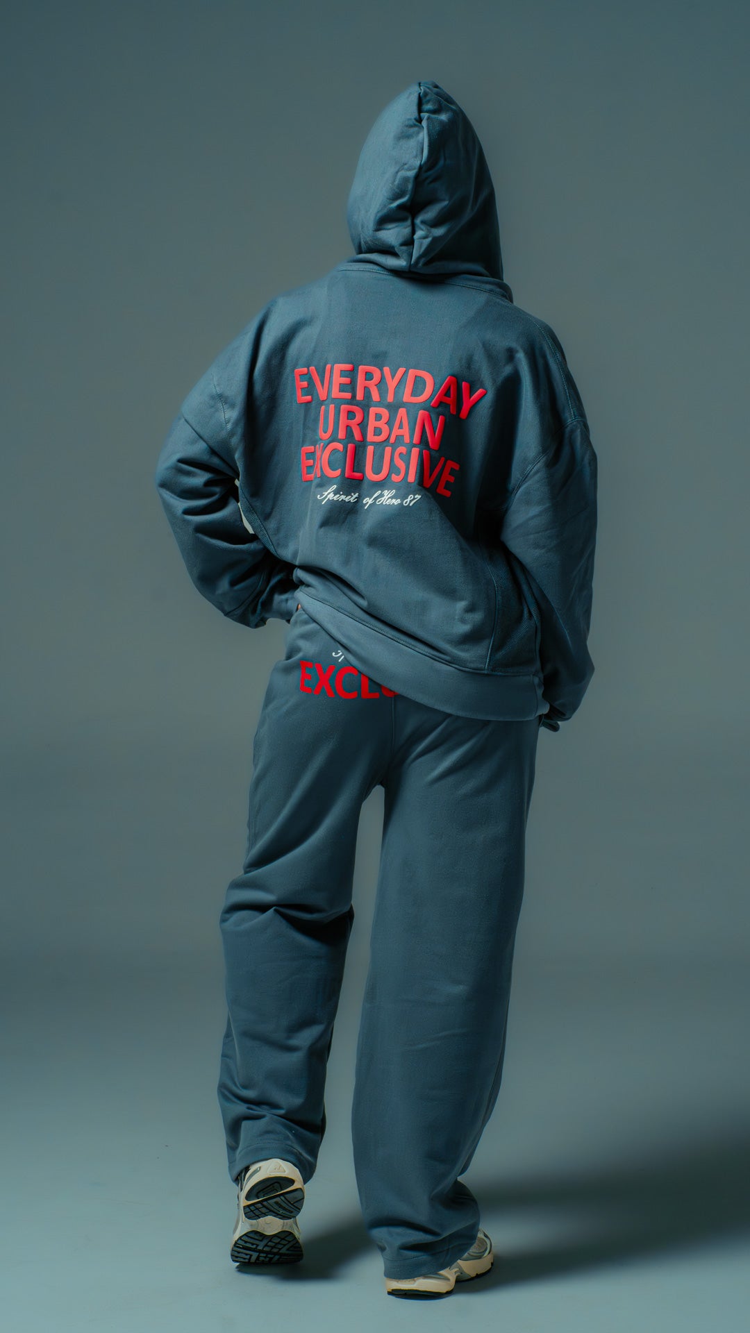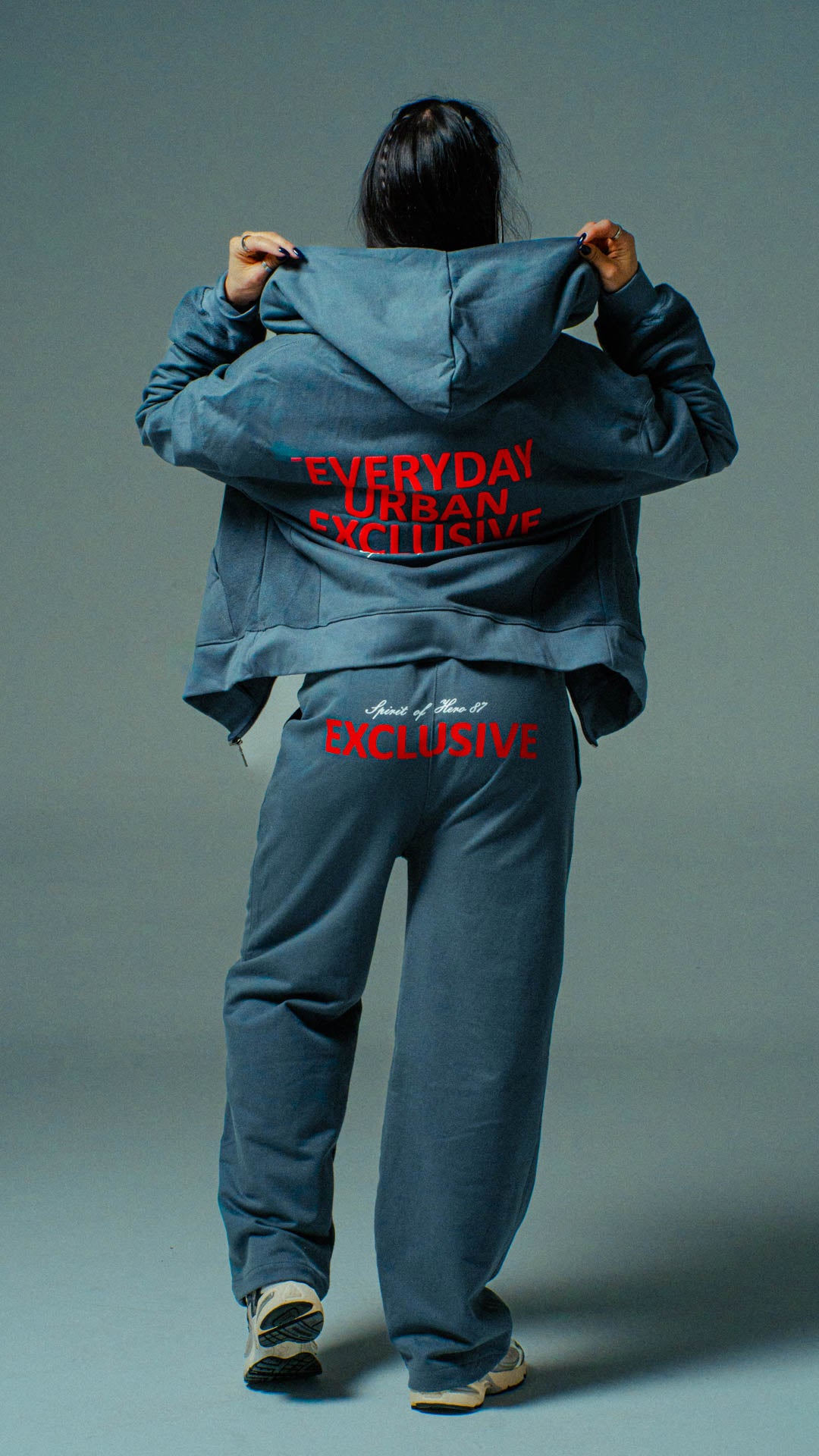 Buzo en burda unisex con cierre y chompa, lleva estampado en frente y espalda, lleva puños y fajones en rib.