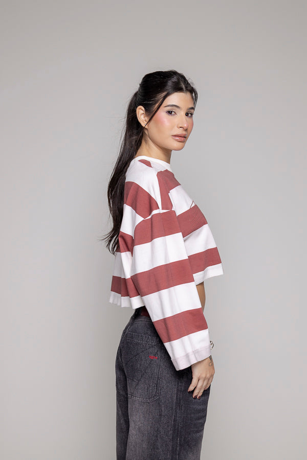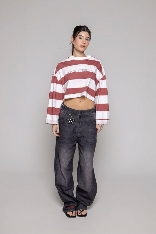 Buzo en franela cuello redondo, lleva estampado en frente y mangas.