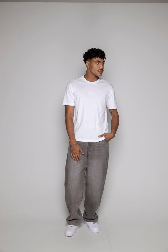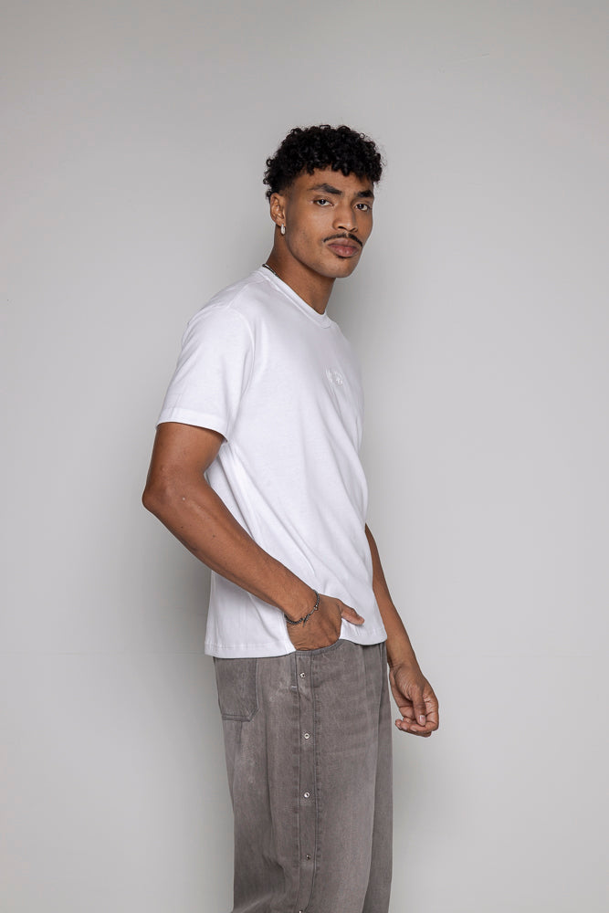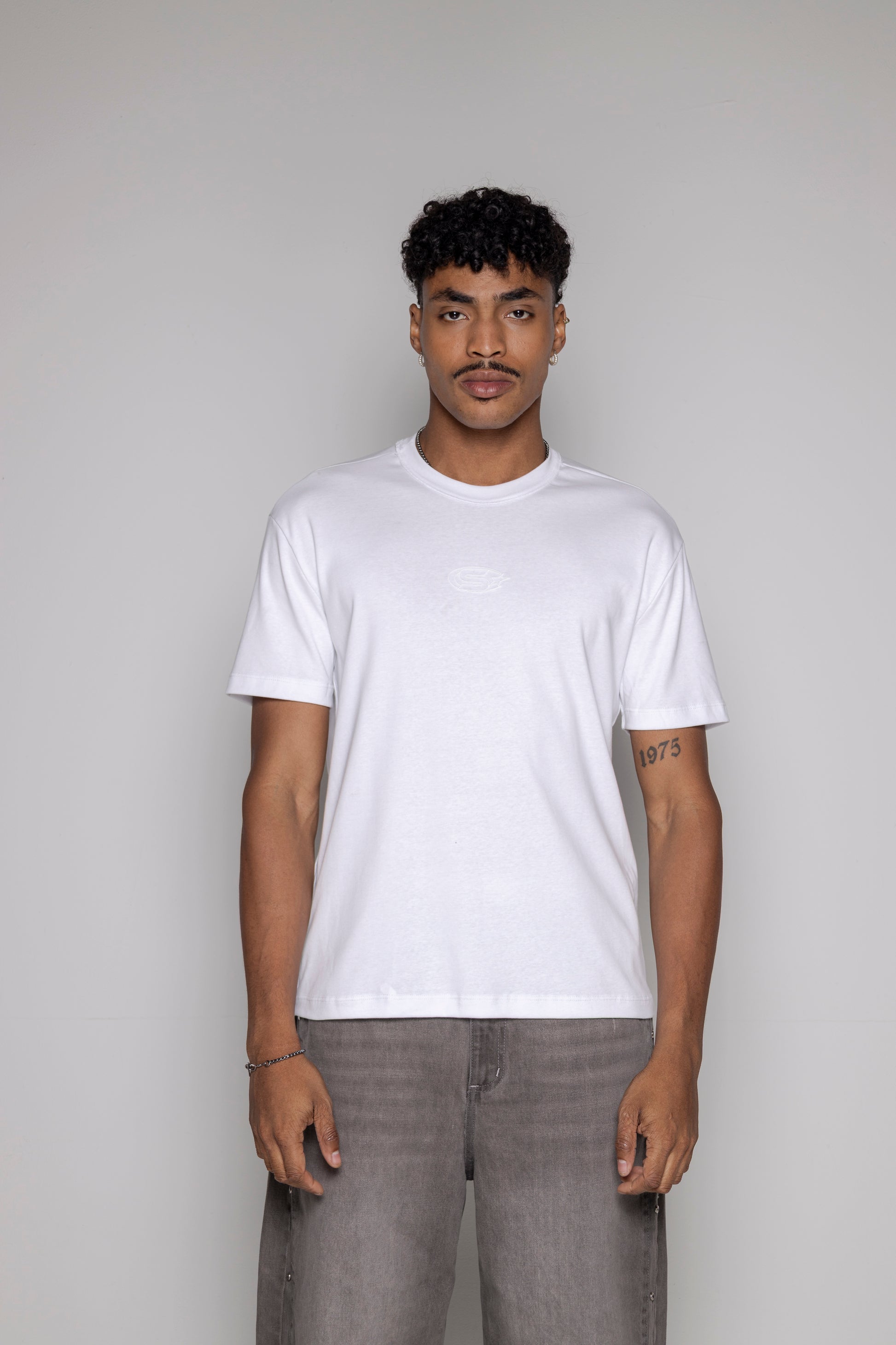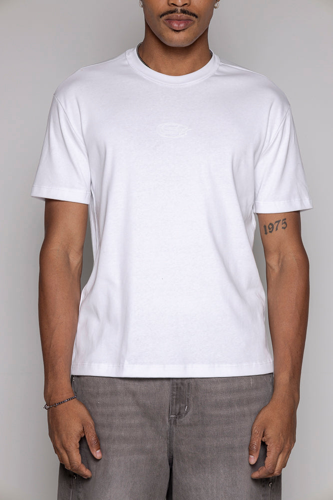 Camiseta silueta ajustada en rib, logo estampado en frente alto relieve, 100% algodón alto gramaje.