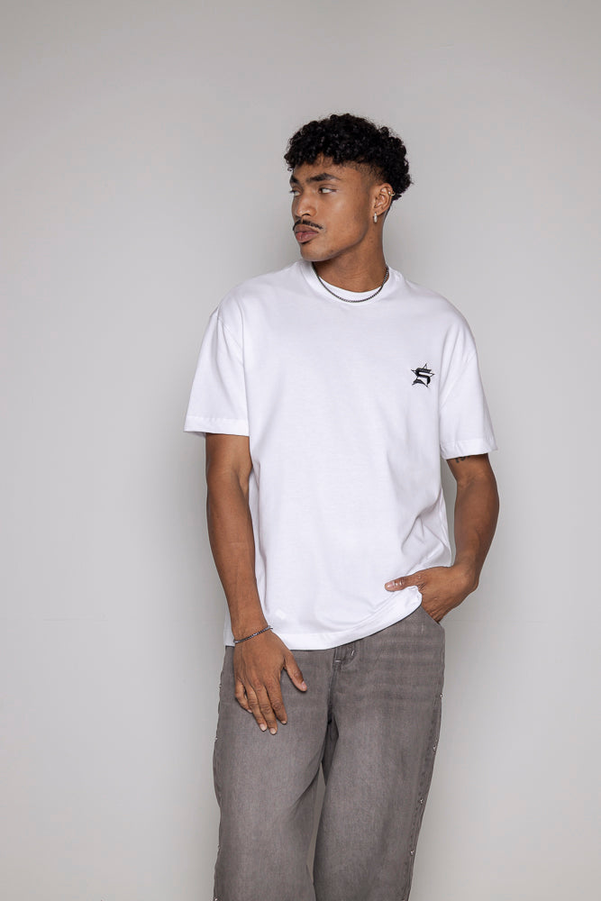 Hecha en 100% algodón alto gramaje y con fit regular, esta camiseta trae nuestro logo bordado en frente y esplada, cuello redondo. Combina muy bien con nuestros jeans y pantalones.