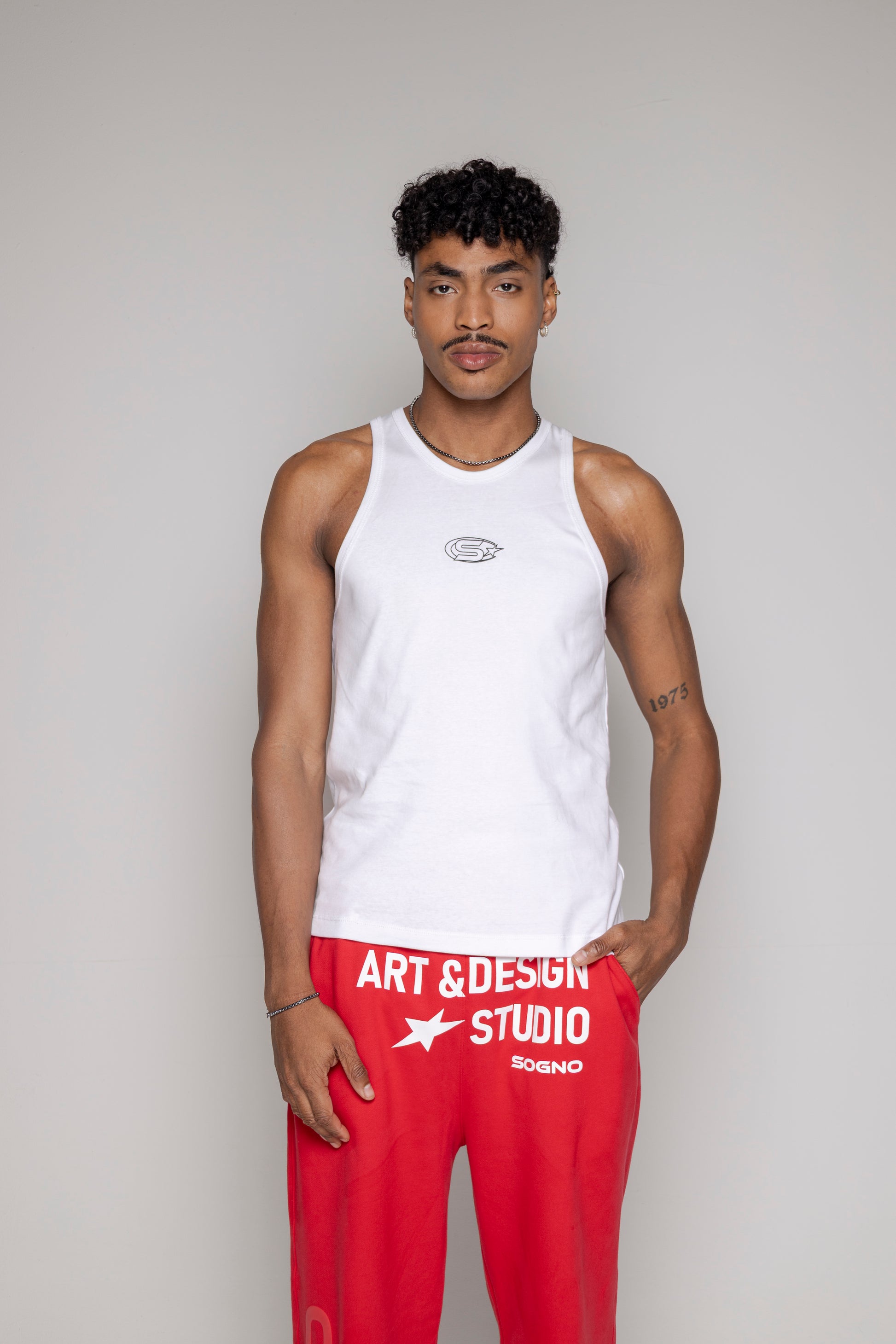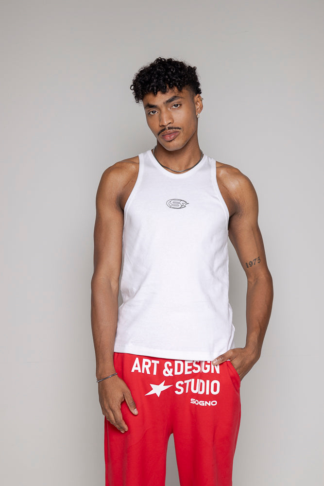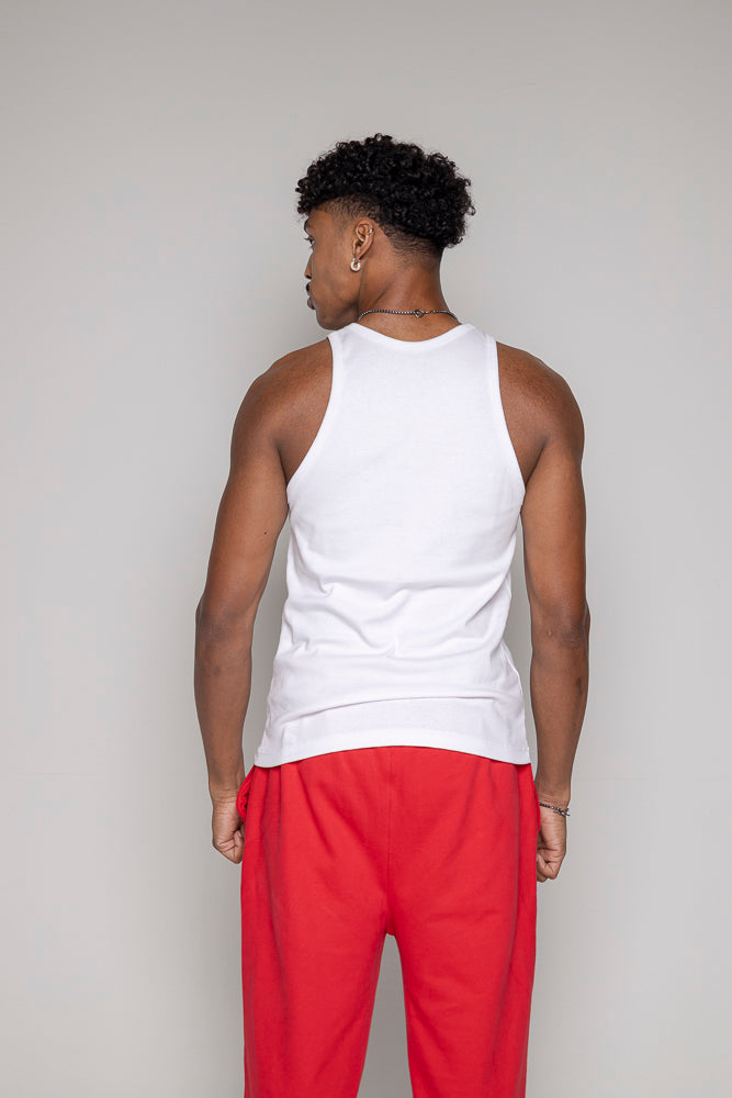 Camisilla silueta ajustada en rib, logo estampado en frente alto relieve, 100% algodón alto gramaje.