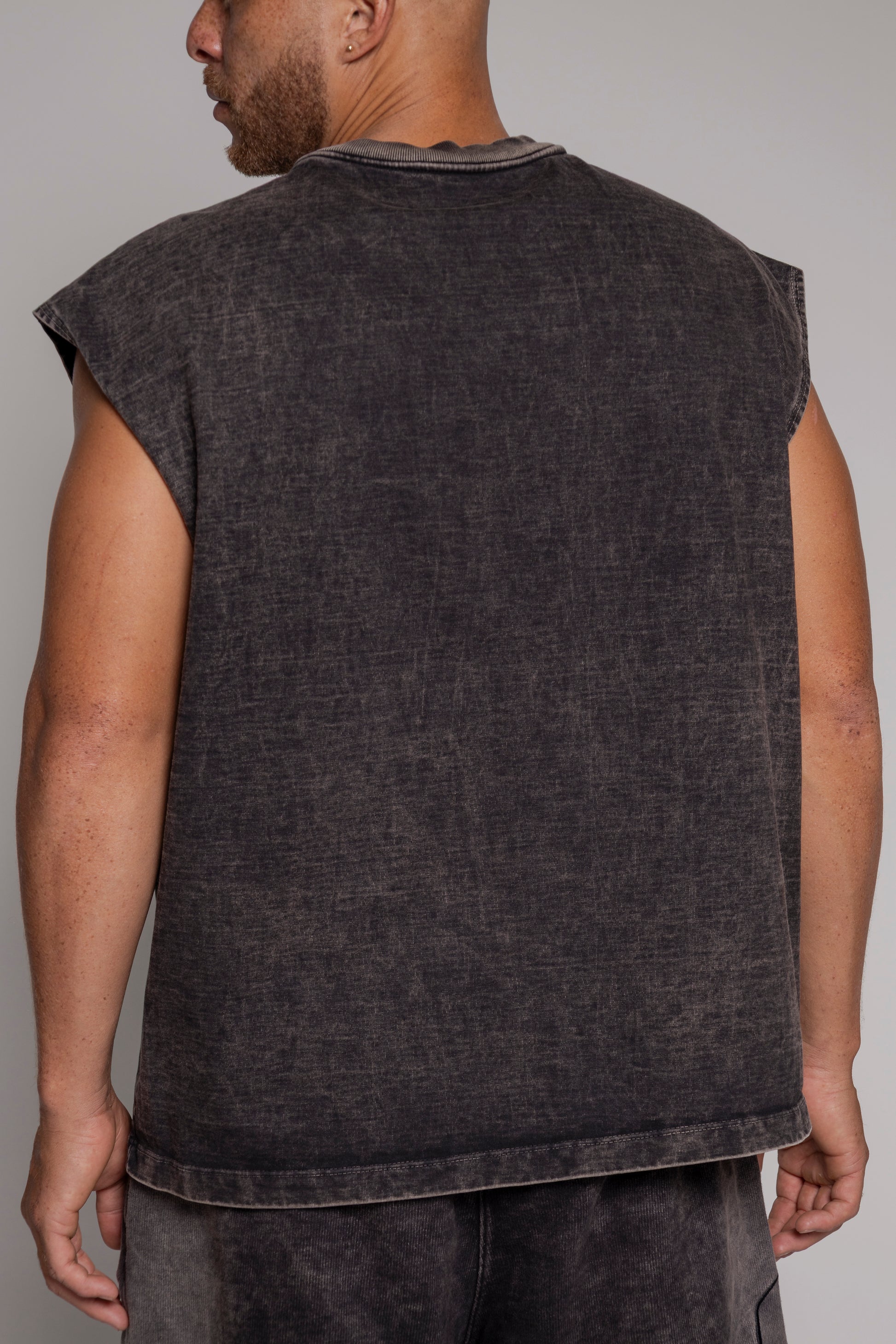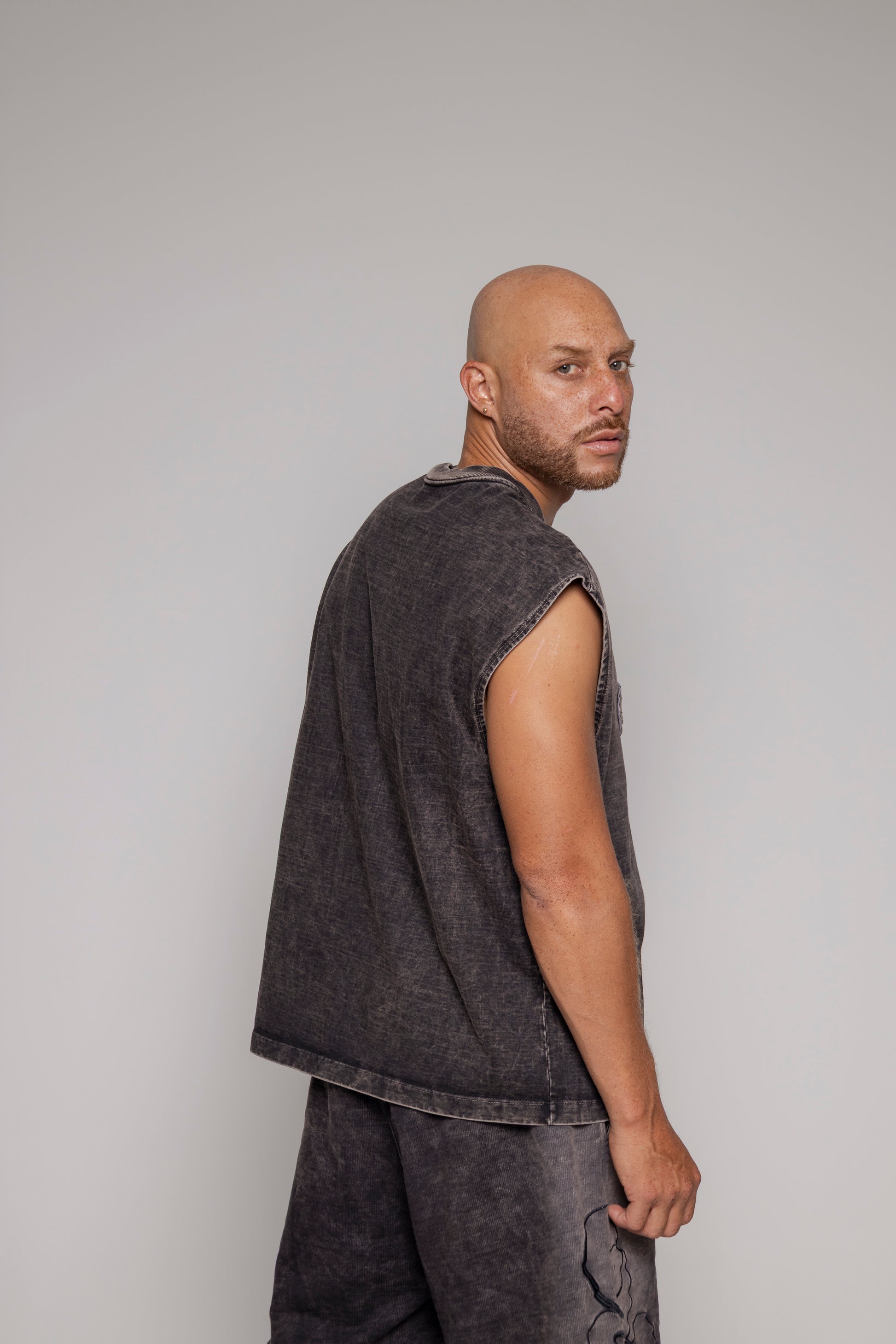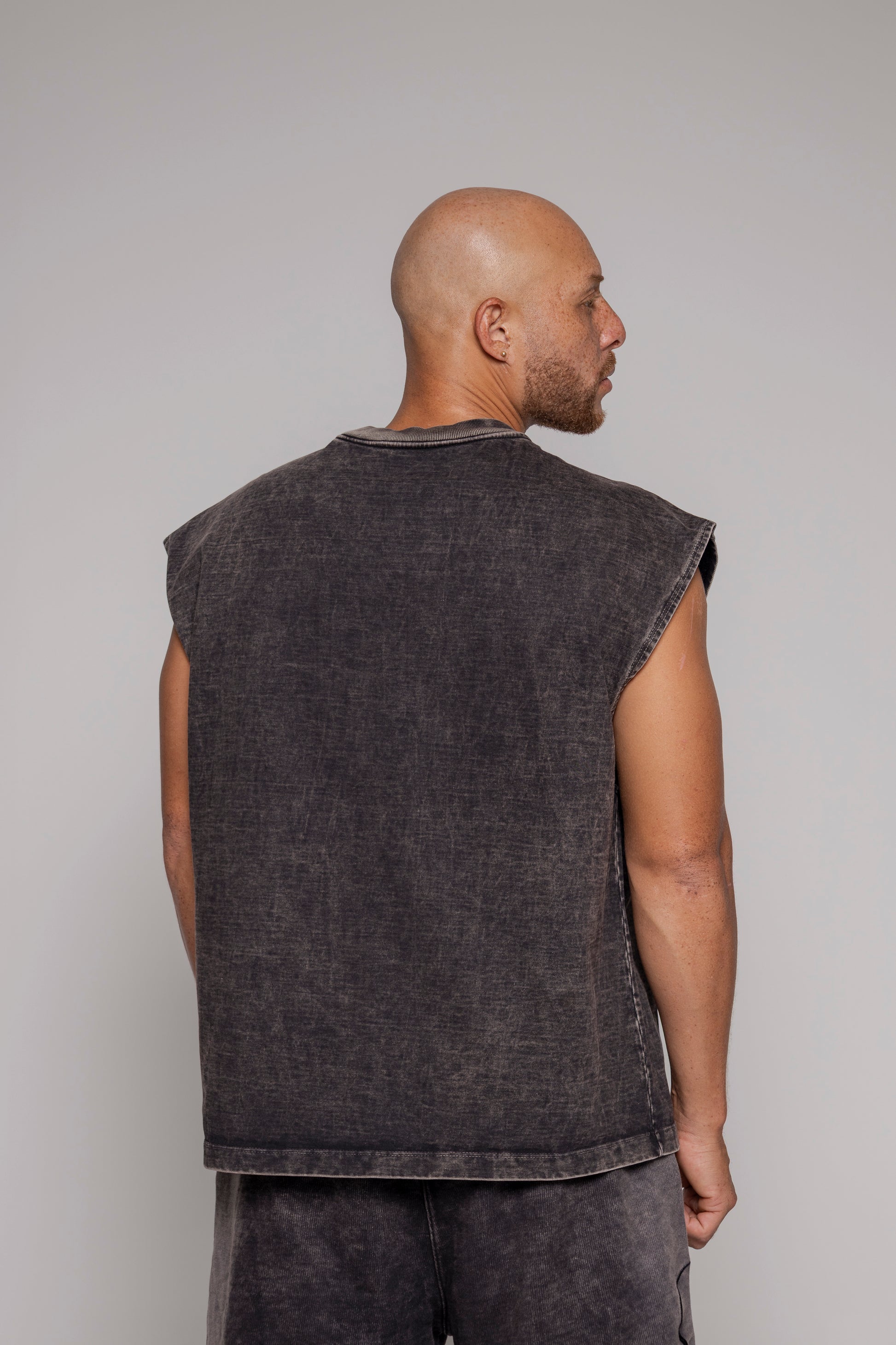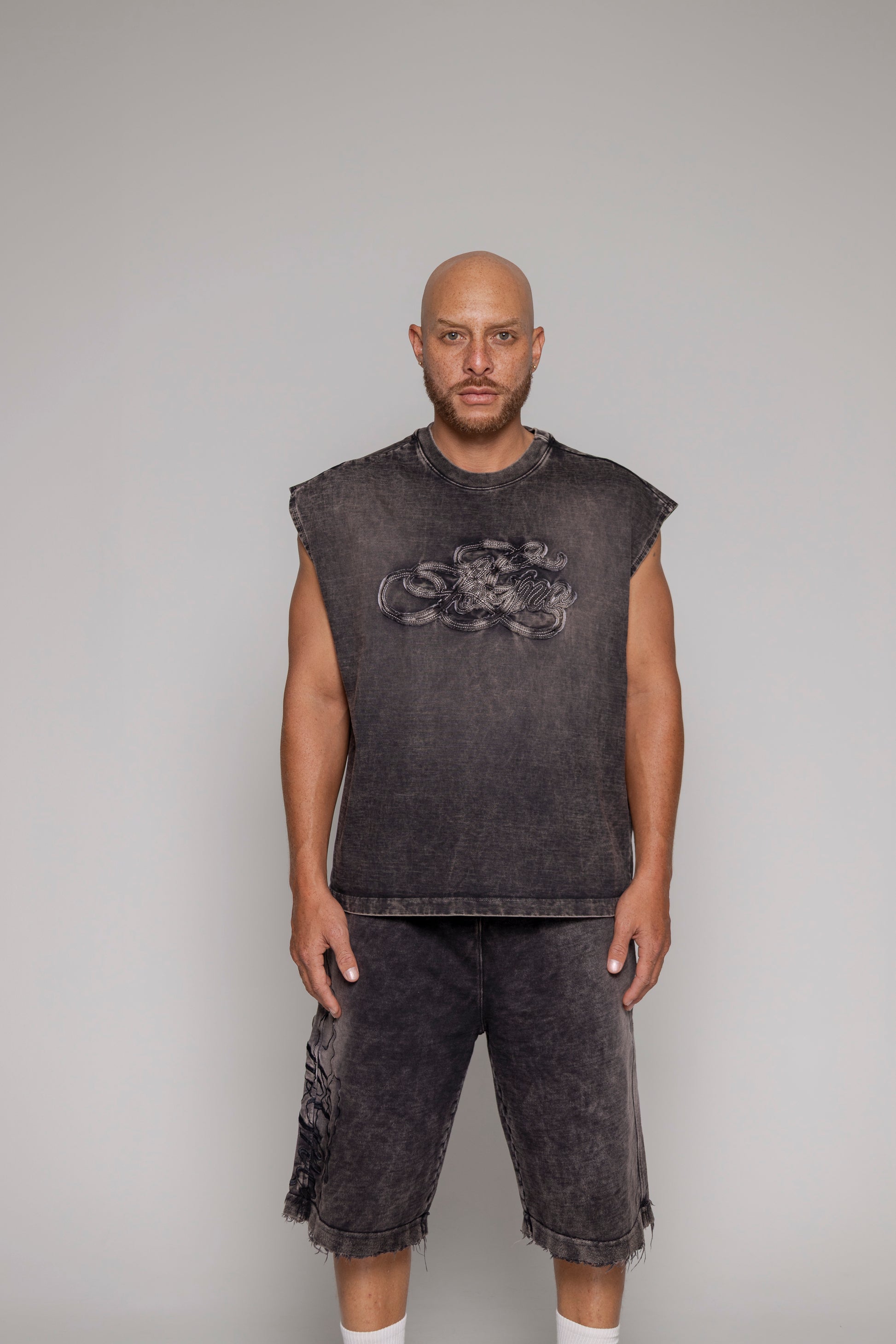 Camisilla en silueta oversized, tela 100% algodón, bordado en frente con aplique, proceso en lavandería.