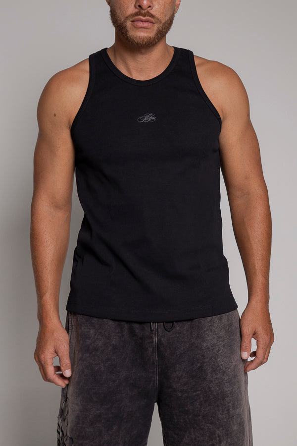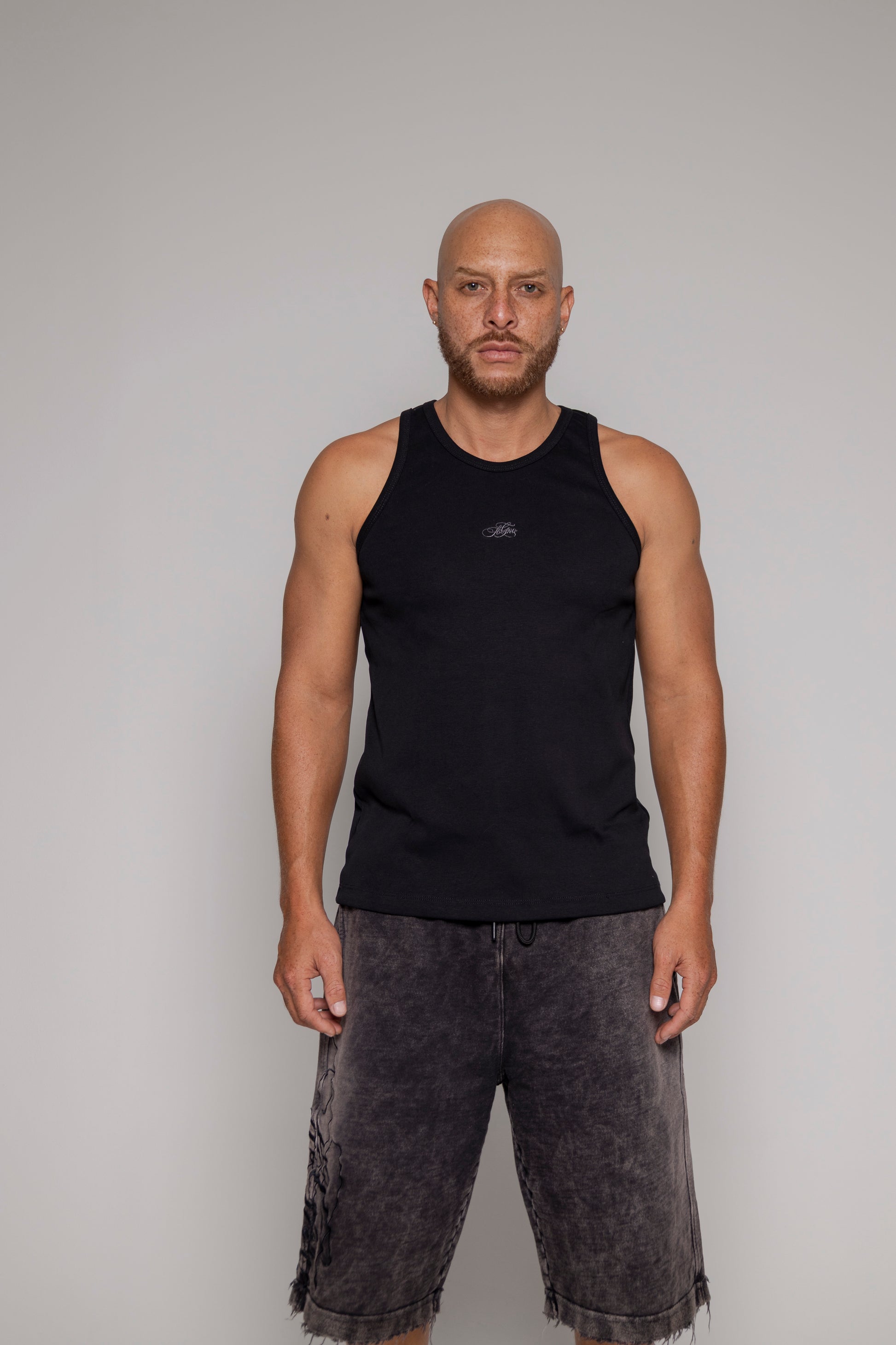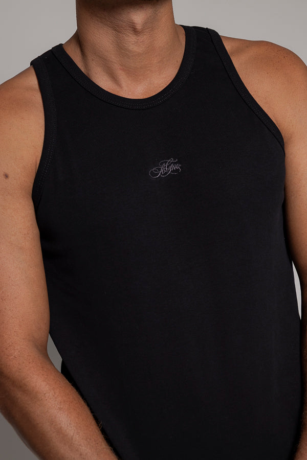 Camisilla silueta ajustada en rib, logo bordado en frente alto relieve, 100% algodón alto gramaje.