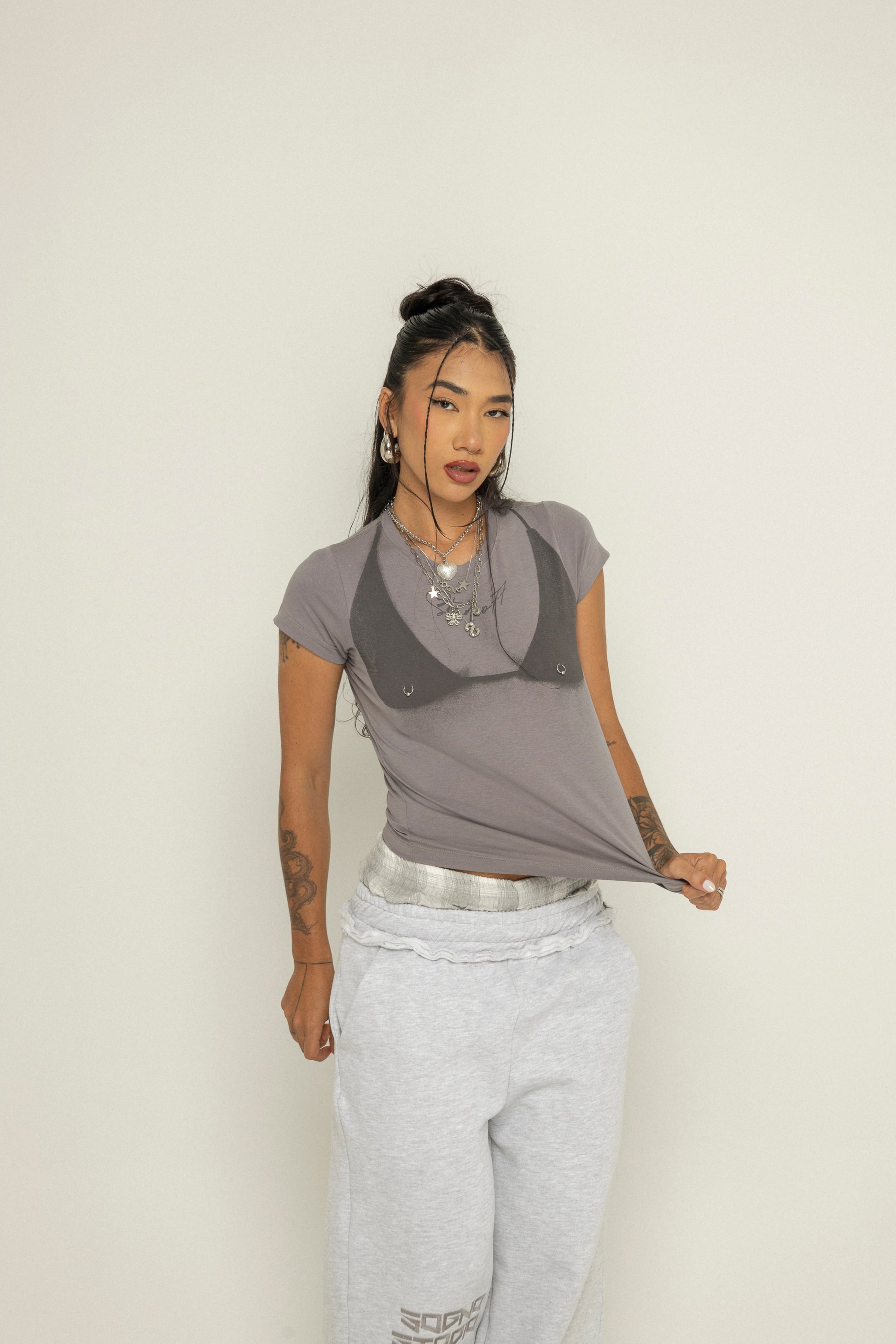Crop T-Shirt boobs Unspeakable-Gris