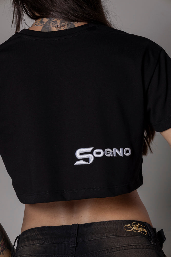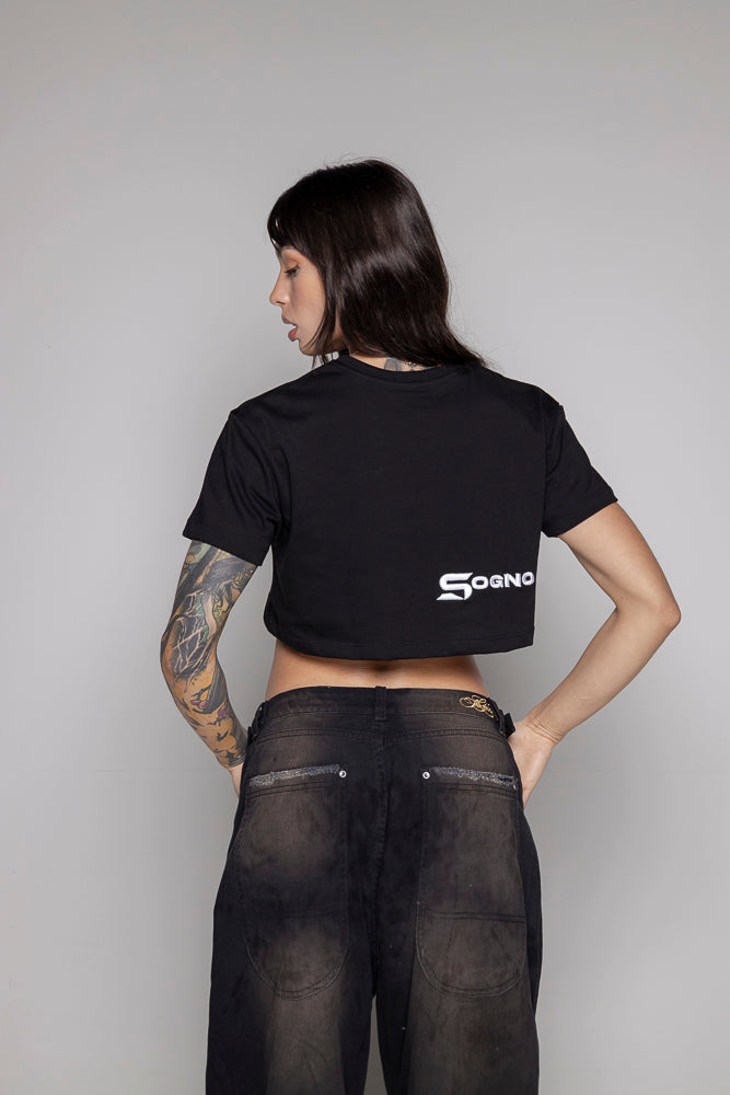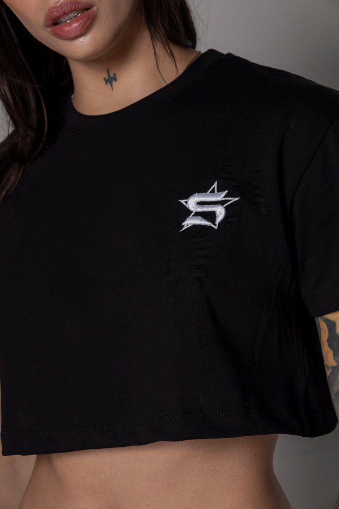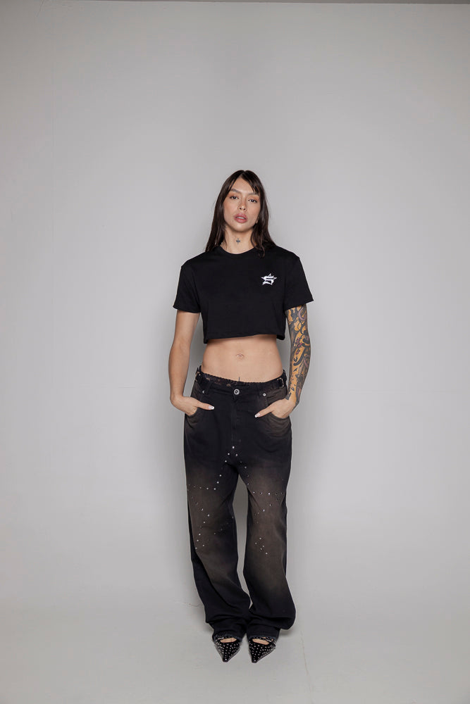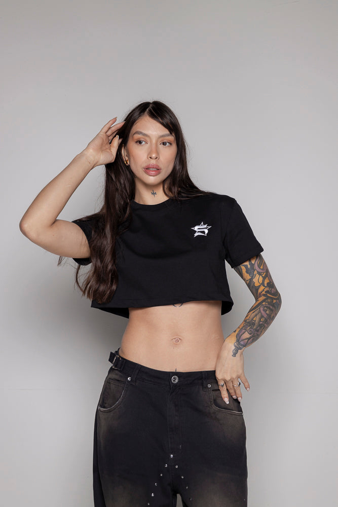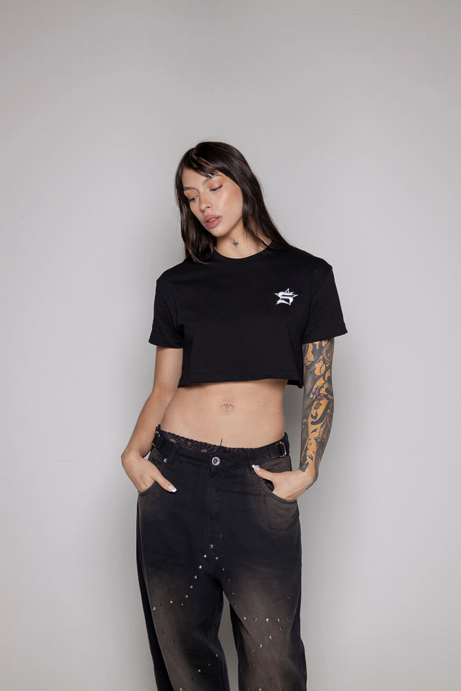 crop top manga corta cuello redondo, bordado en frente y espalda alto relieve, 100% algodón alto gramaje peso 250 gr.