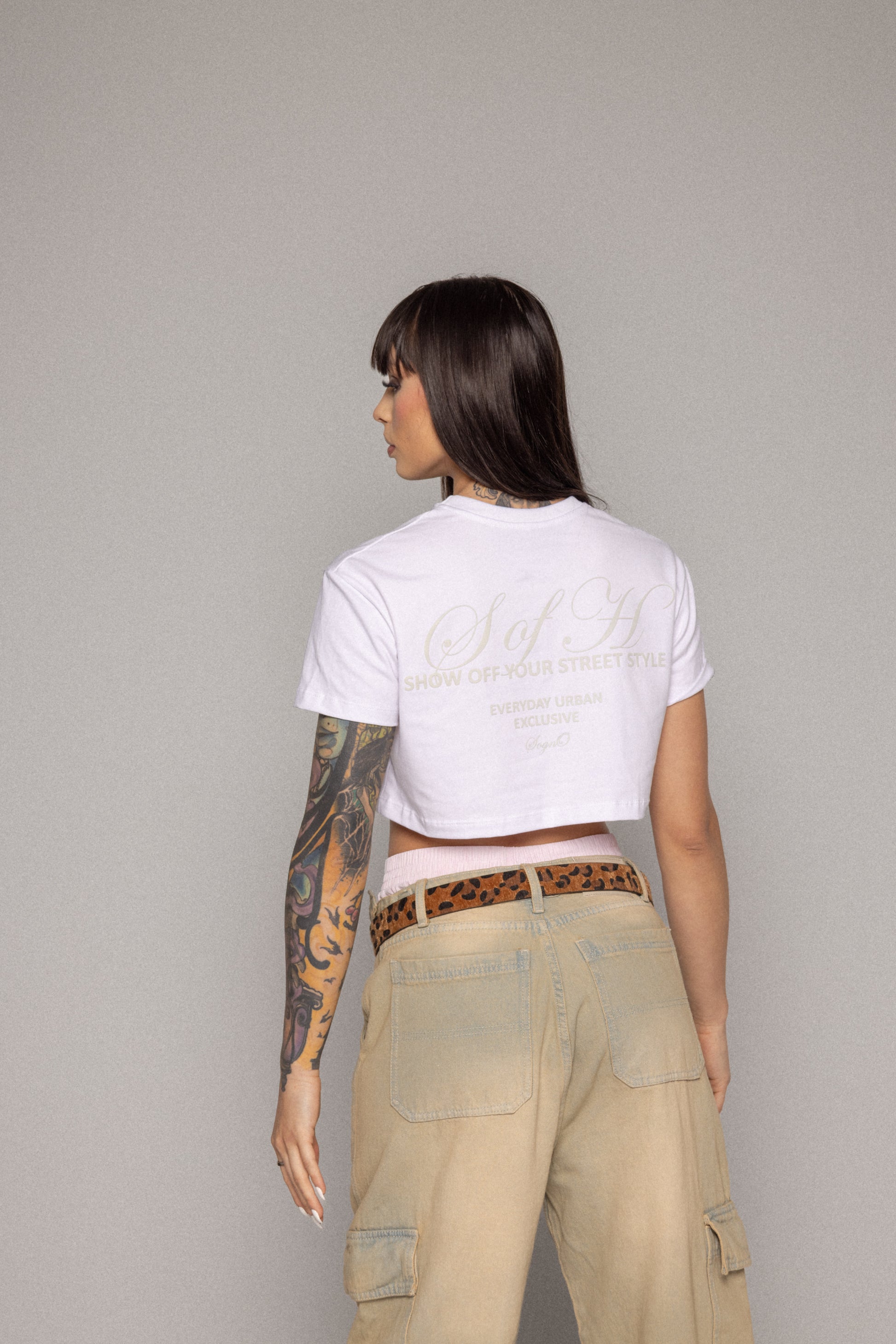 crop top manga corta cuello redondo, estampado en frente y espalda  alto relieve, 100% algodón alto gramaje peso 250 gr.