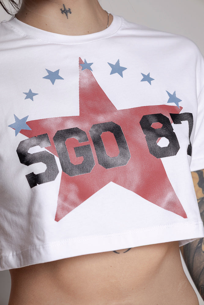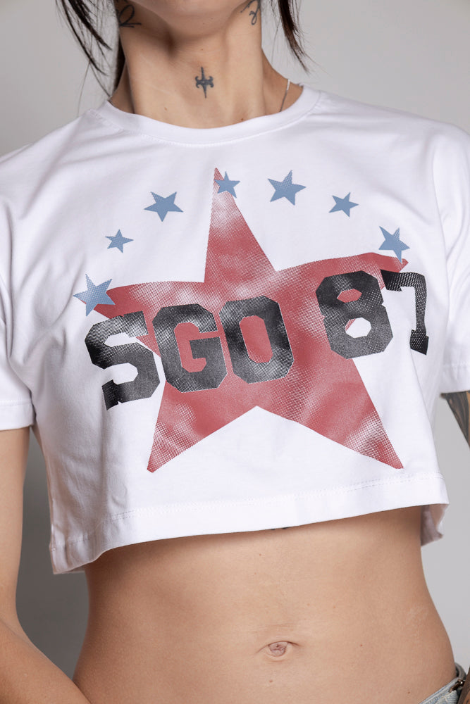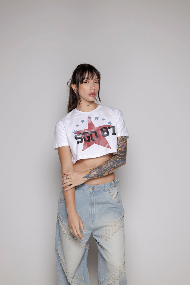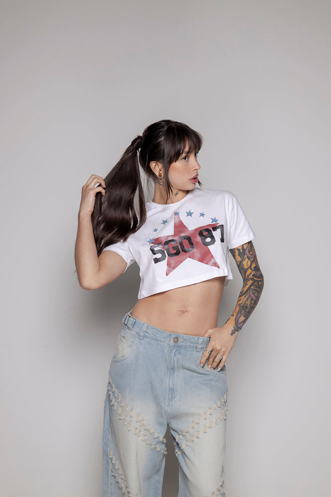 crop top manga corta cuello redondo, estampado en frente, 100% algodón alto gramaje peso 250 gr.