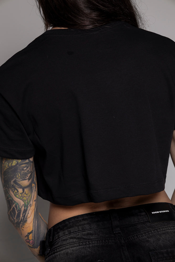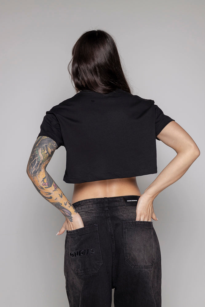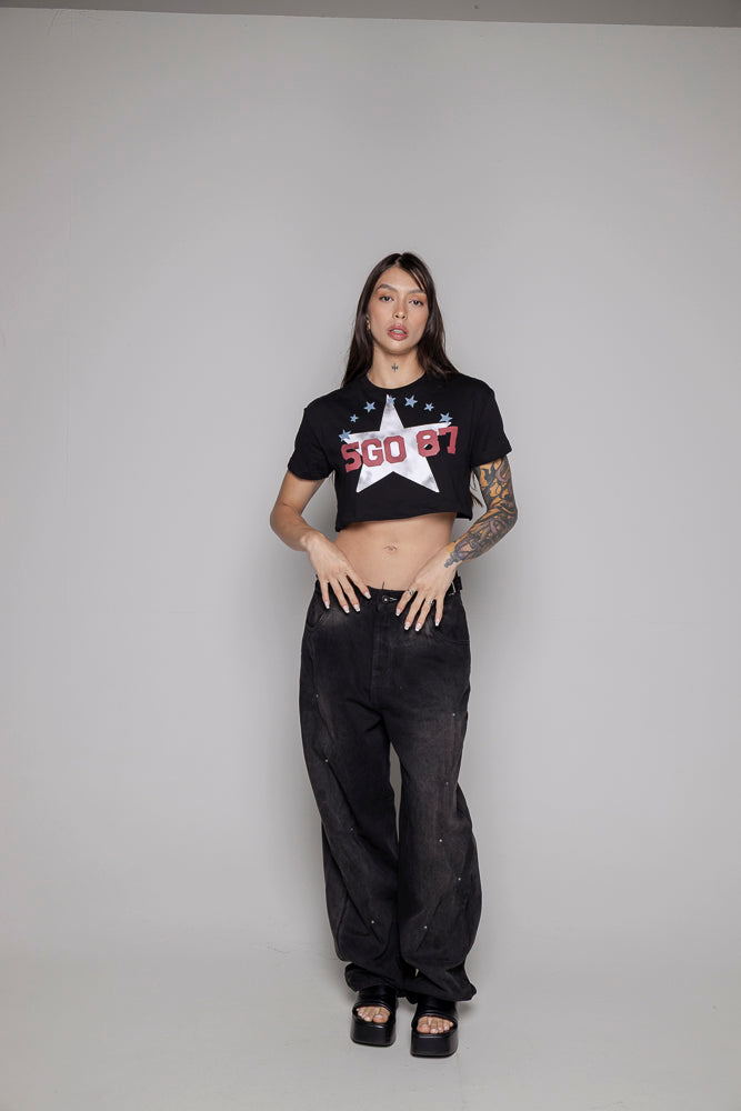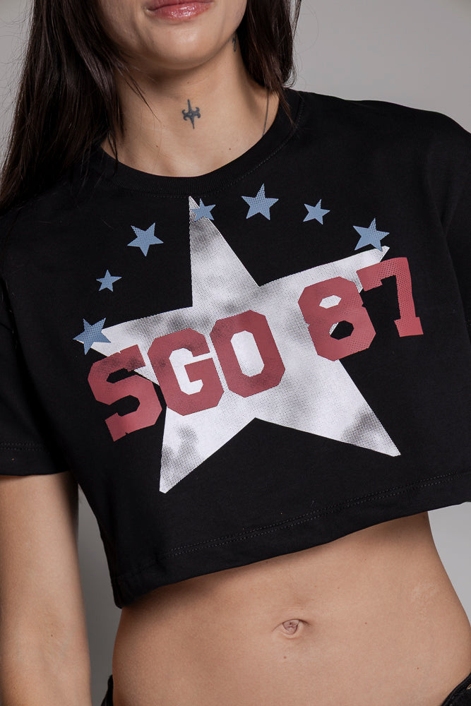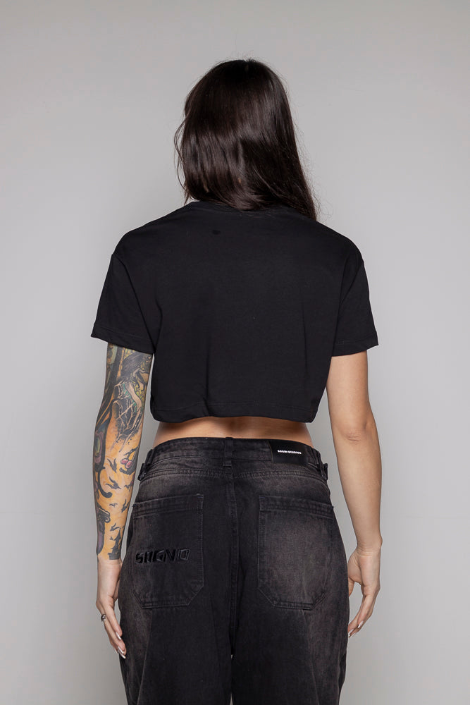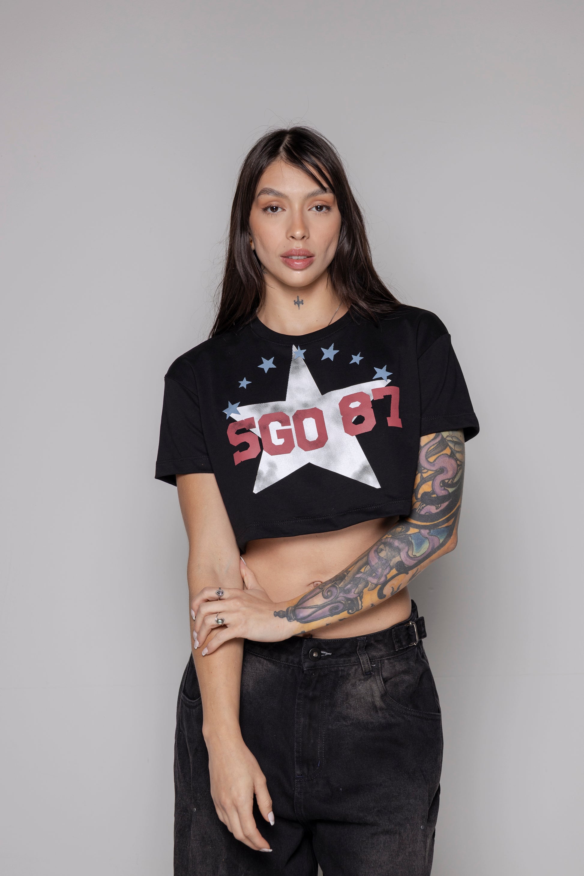 crop top manga corta cuello redondo, estampado en frente, 100% algodón alto gramaje peso 250 gr.