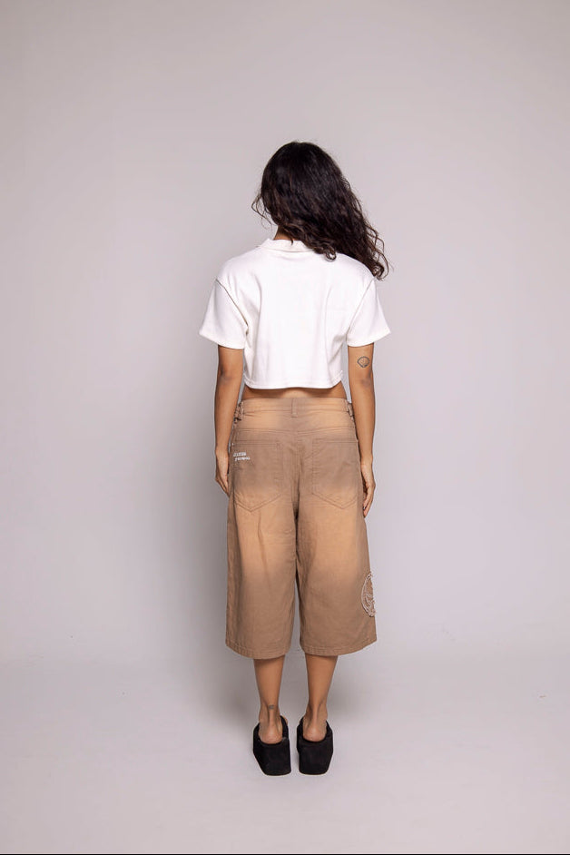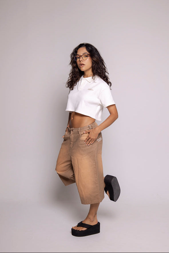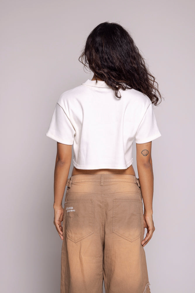 crop top manga corta tipo polo, estampado en frente alto relieve, 100% algodón alto gramaje peso 250 gr.