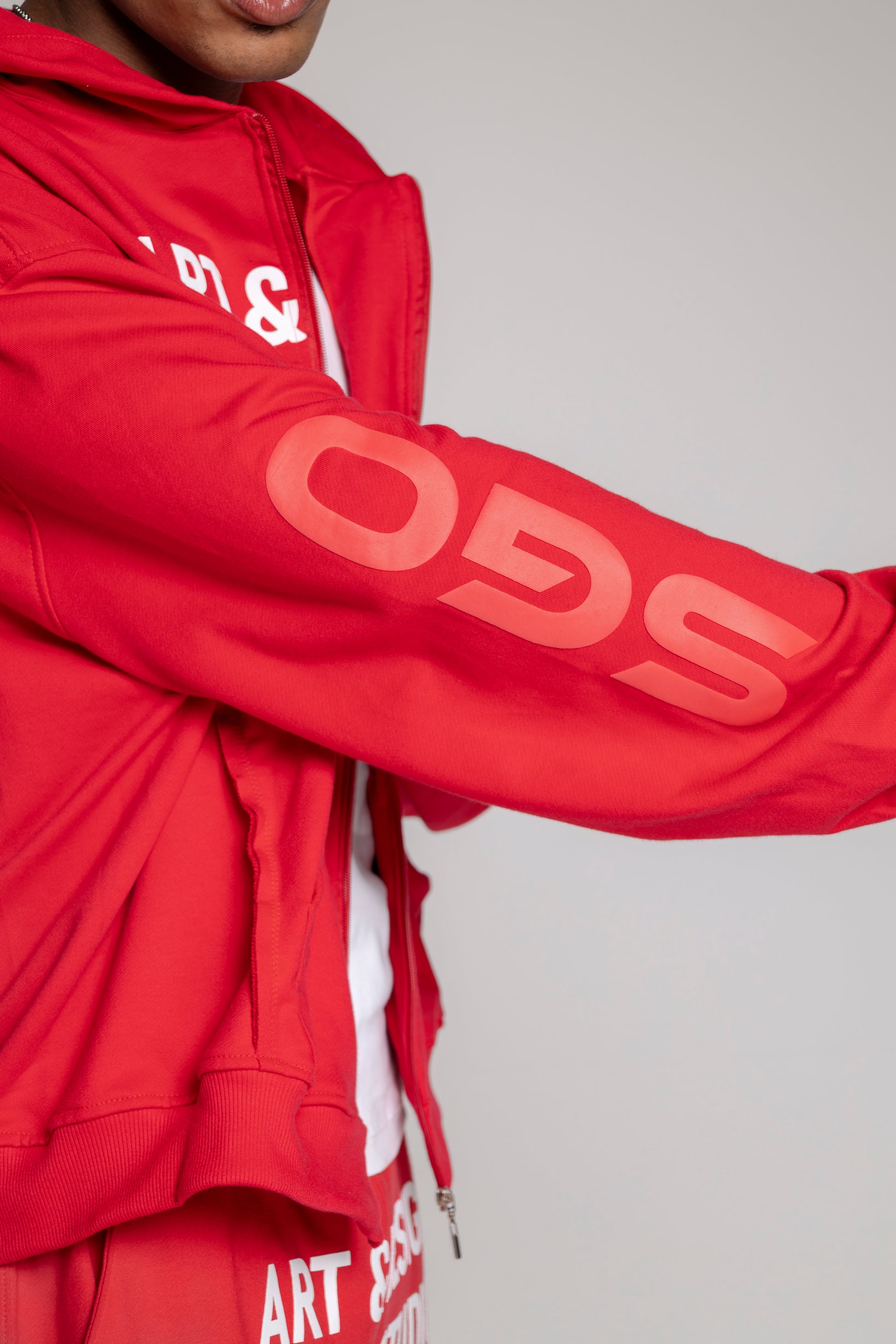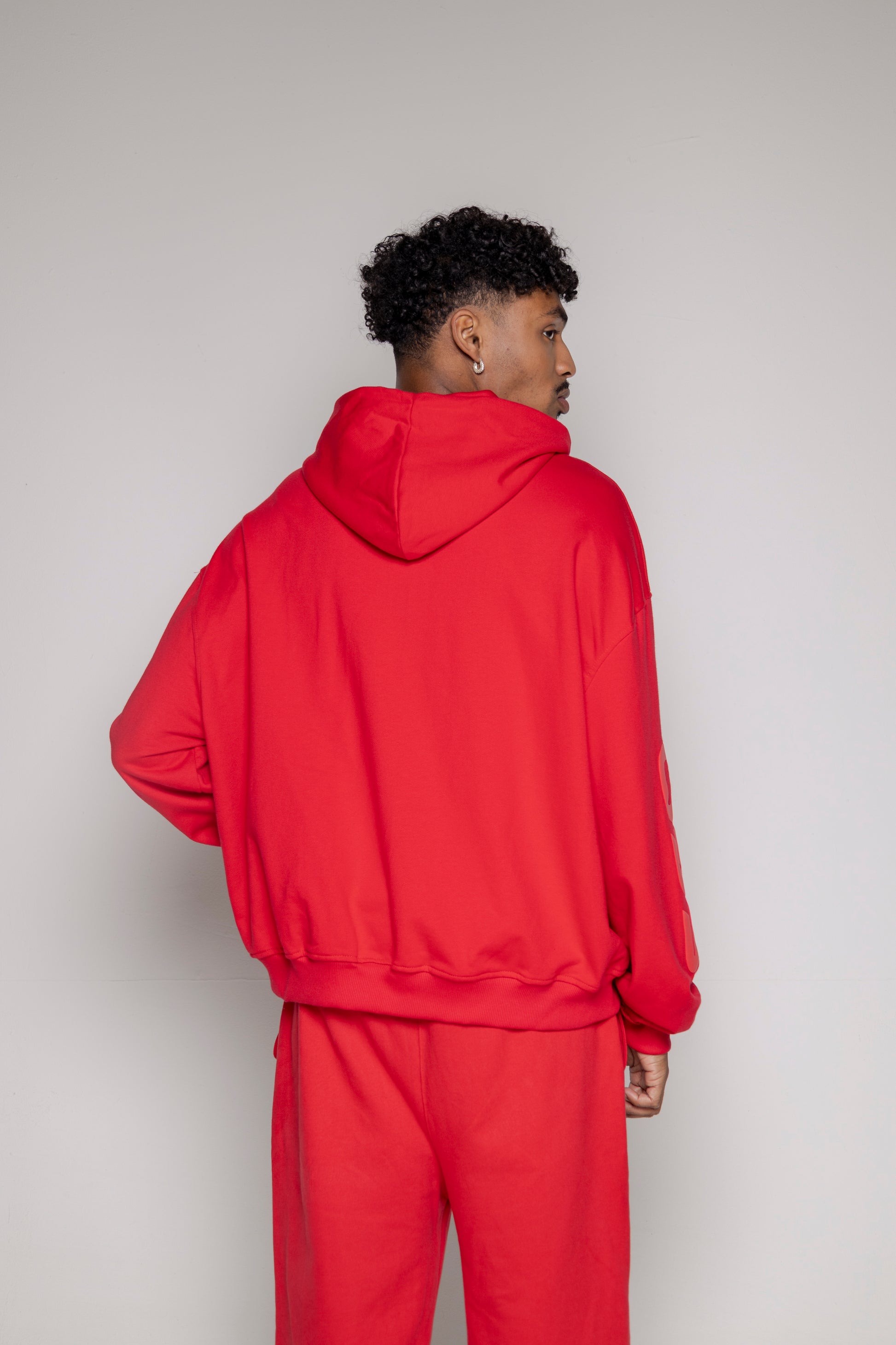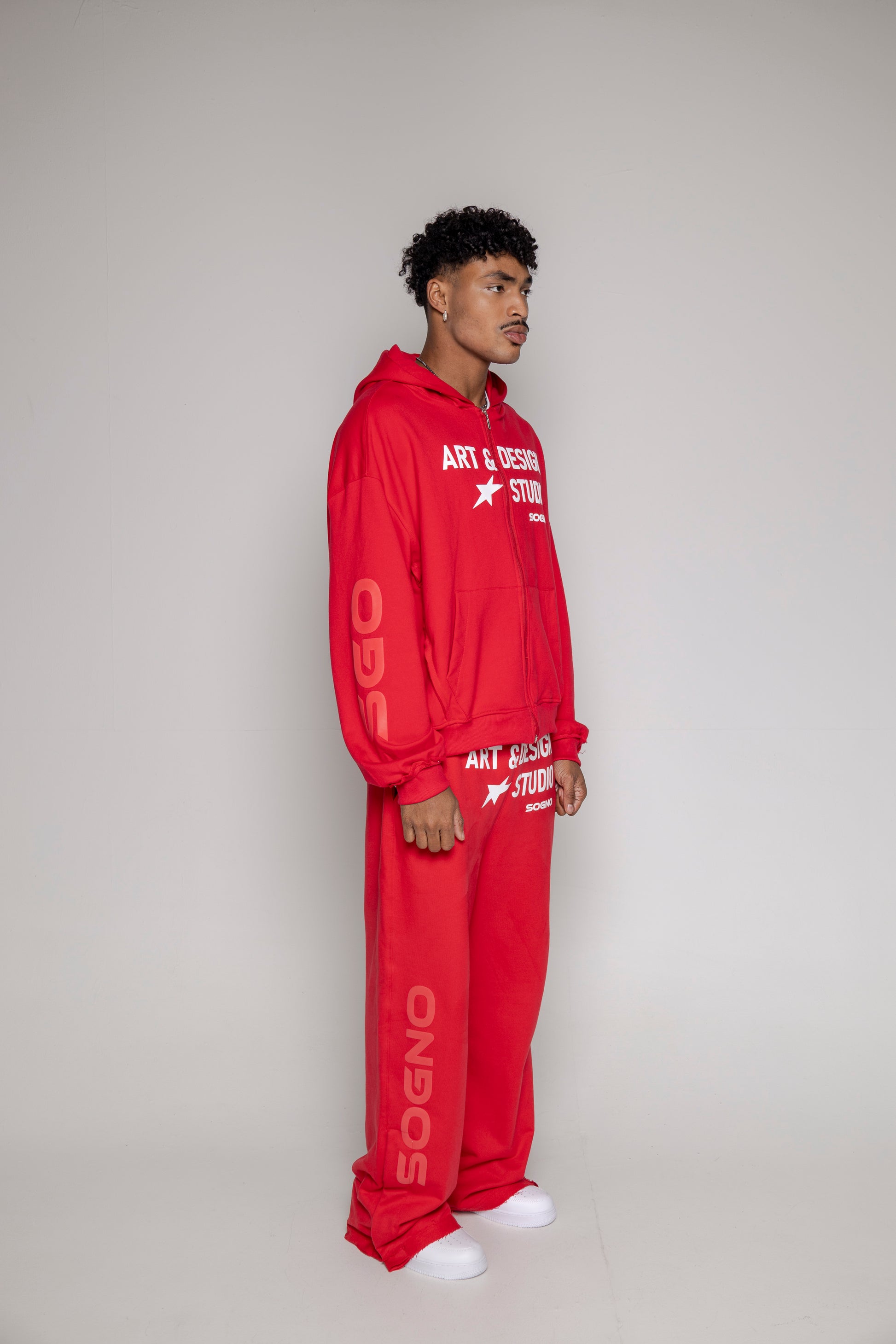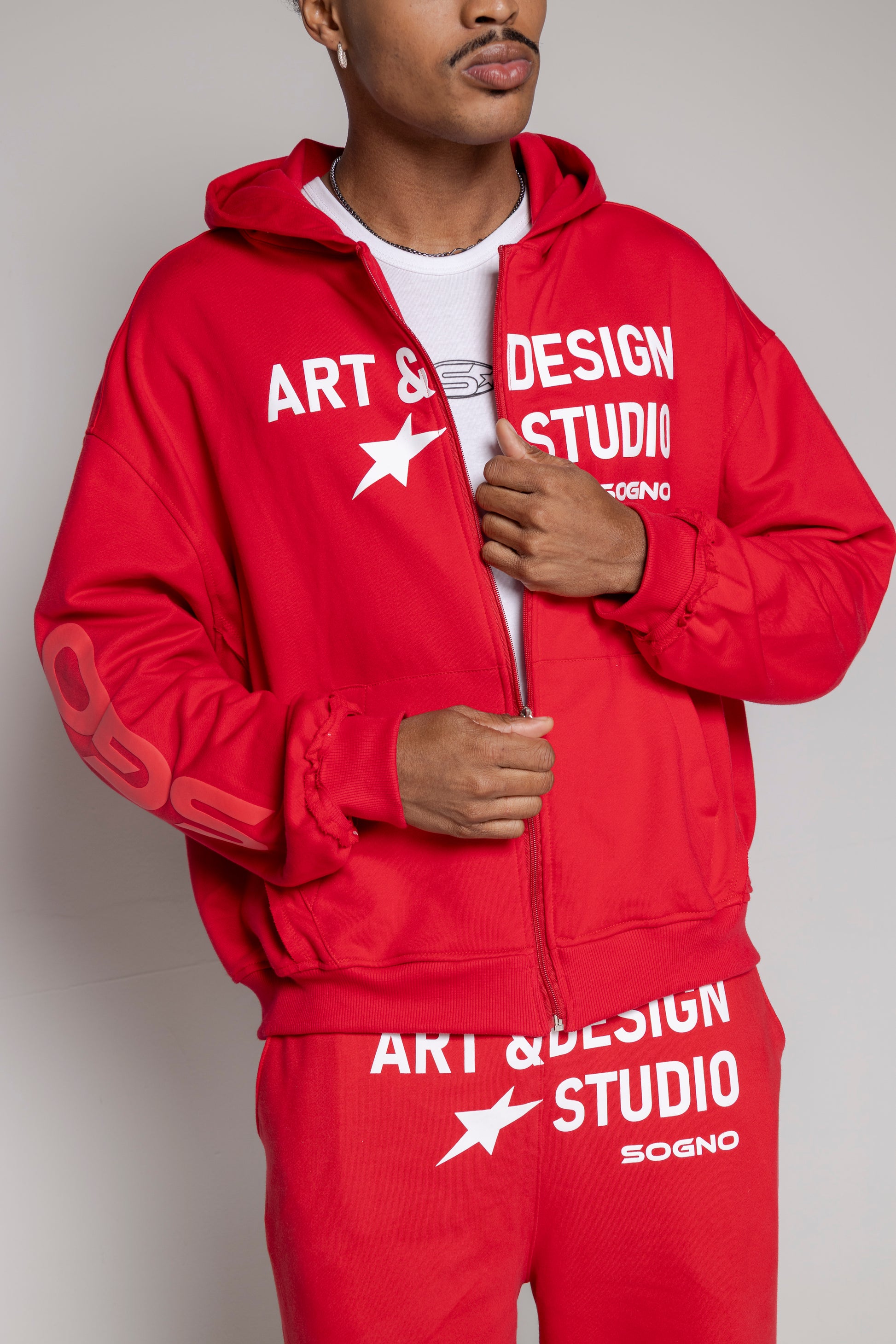 Buzo en burda unisex con cierre y chompa, lleva estampado en frente y espalda, lleva puños y fajones en rib.