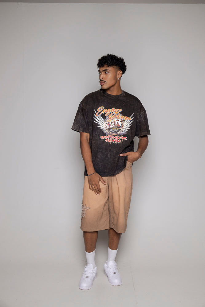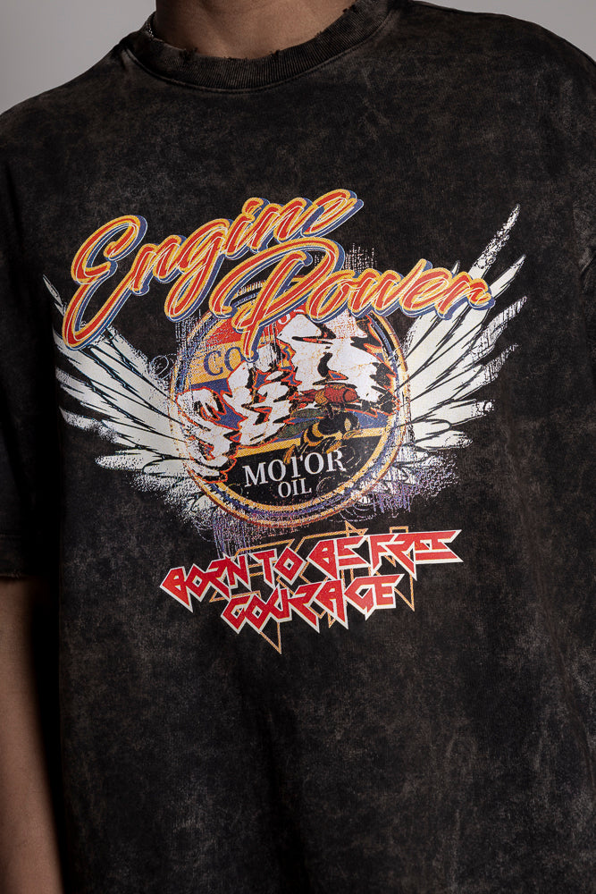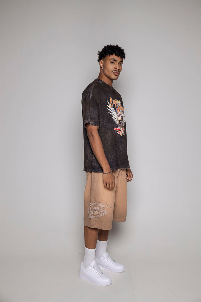 Hecha en 100% algodón alto gramaje y con fit oversized, esta camiseta trae nuestro logo estampado en frente, estampado en la espalda, cuello redondo, desgaste en lavanderia. Combina muy bien con nuestros jeans y pantalones.