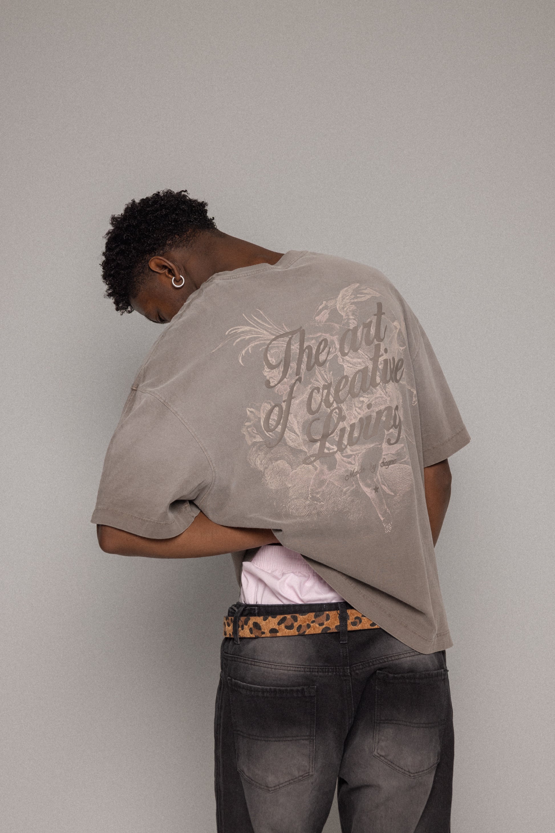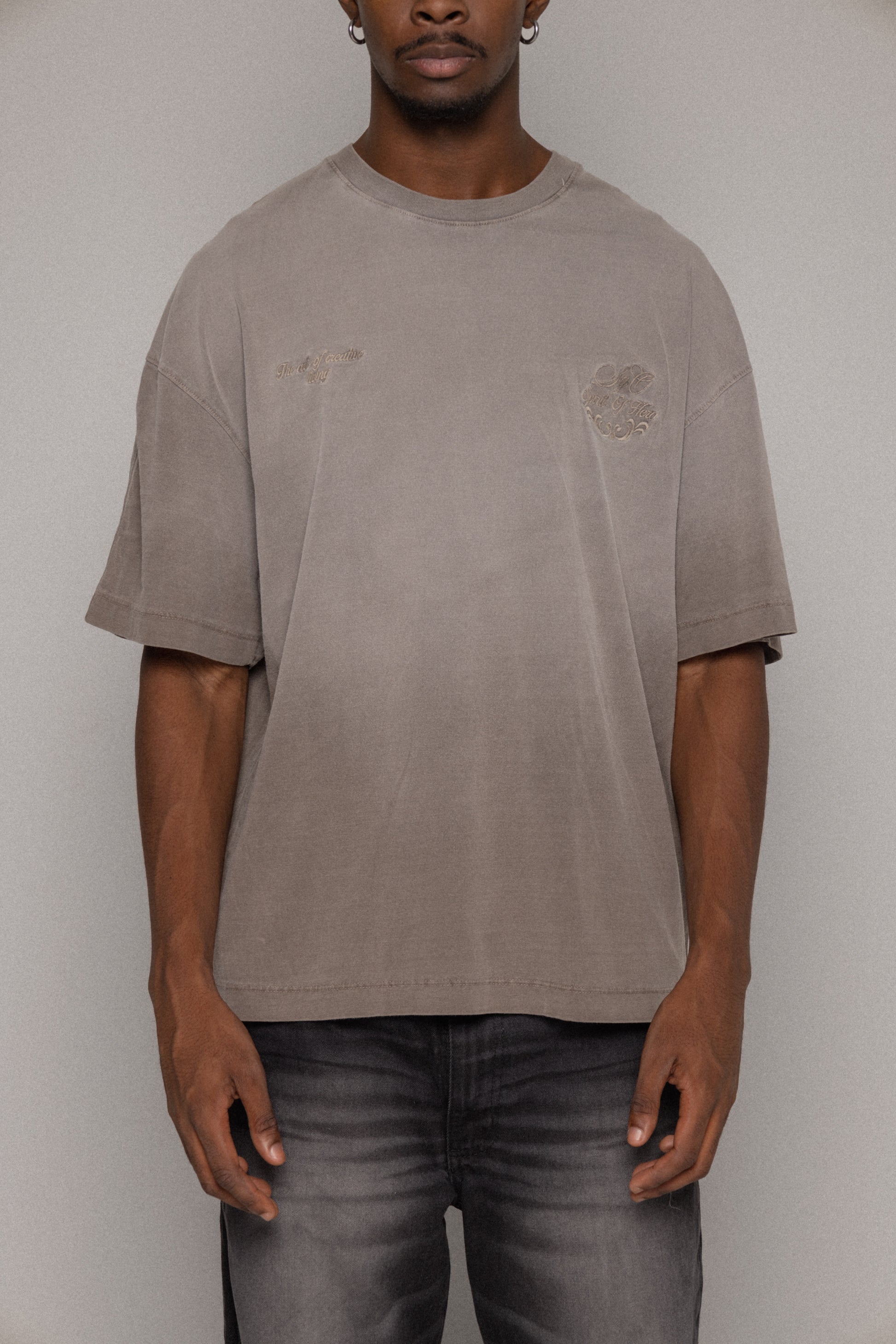 Camiseta Oversized, bordado en frente alto relieve y espalda estampada con alta densidad 100% Algodón alto gramaje peso 240 gr.