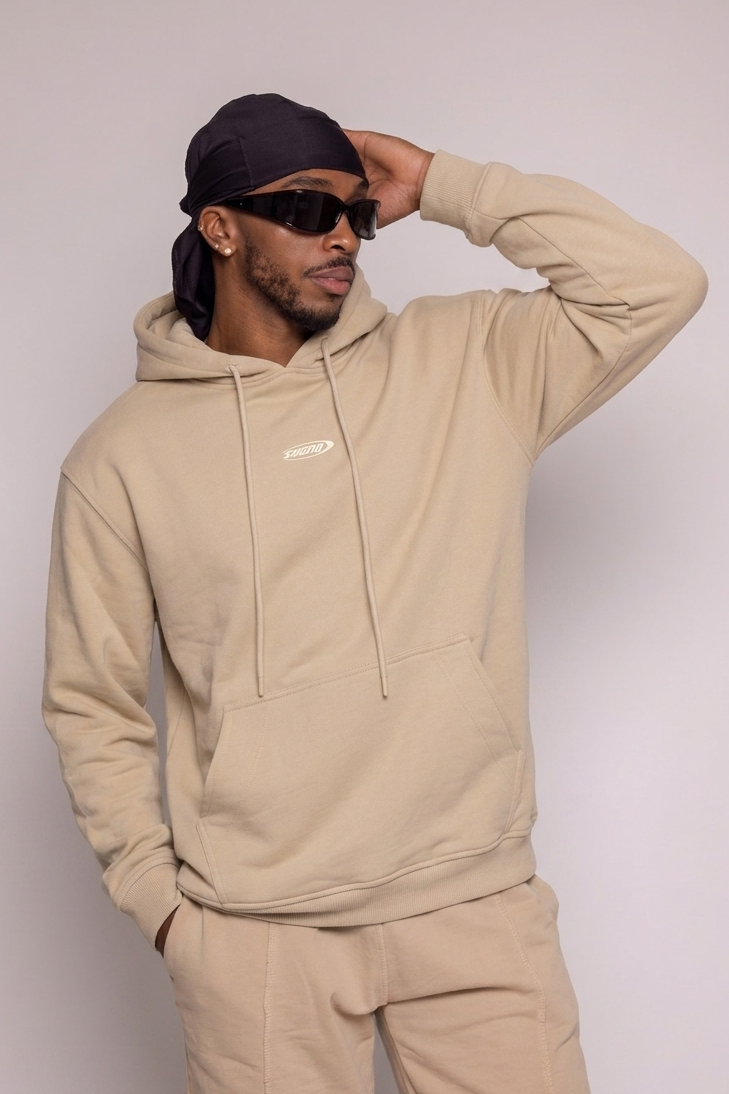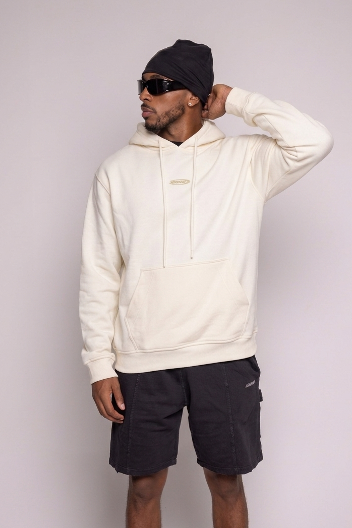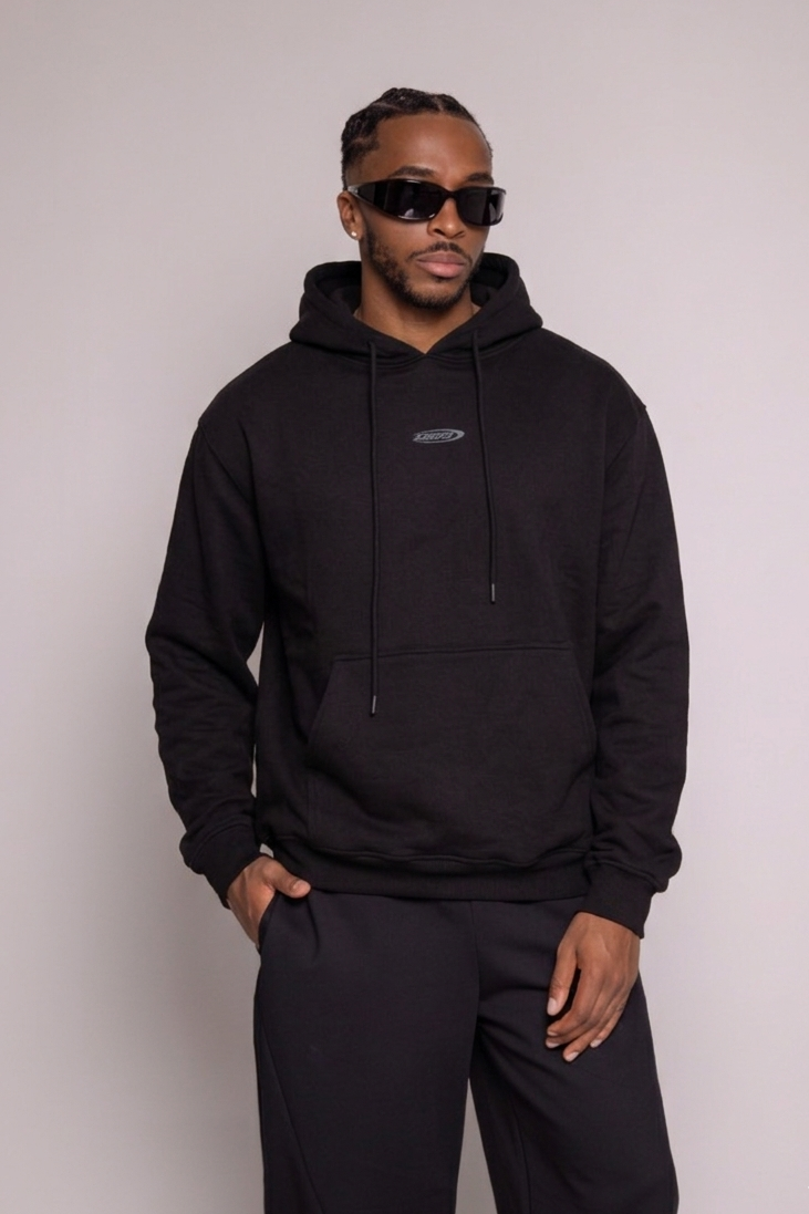 Buzo unisex en burda con chompa, lleva estampado en el frente alto relieve, lleva puños y fajones en rib.