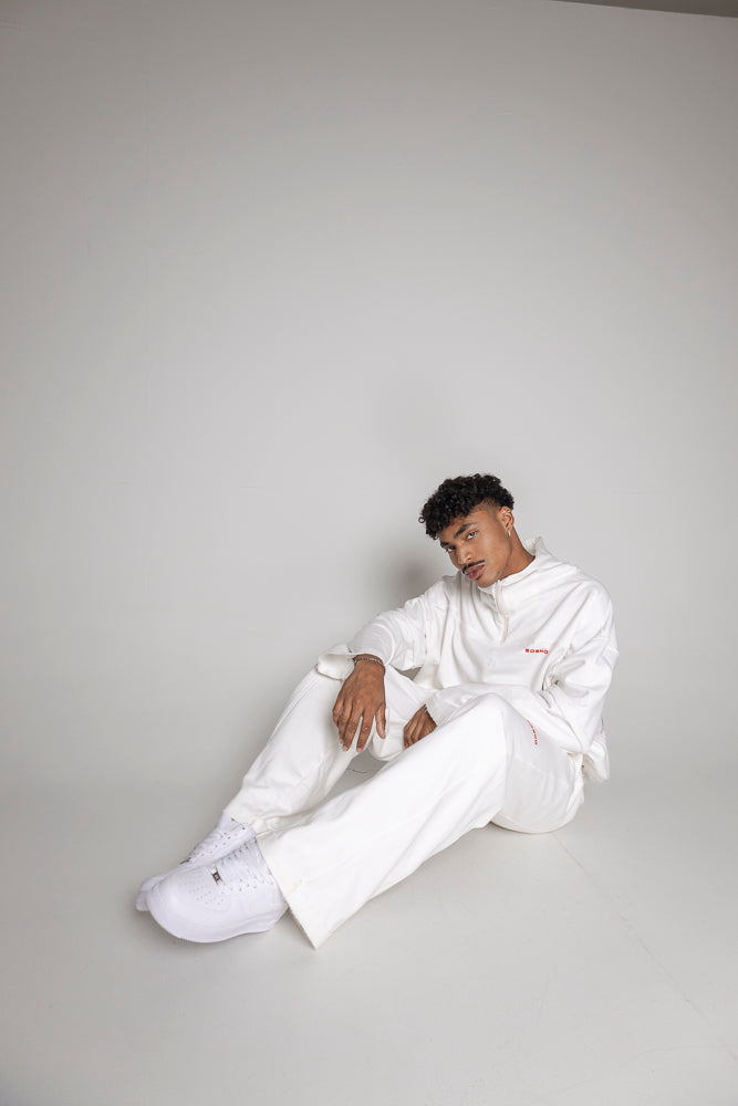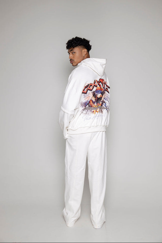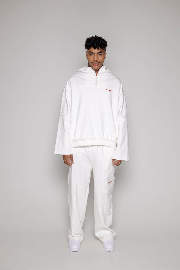Sudadera unisex color beige, bota recta, tiene cintura enresortada para un ajuste cómodo. Tiene cordón ajustable en cintura.