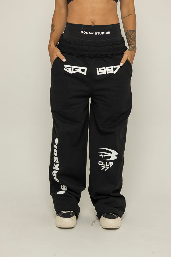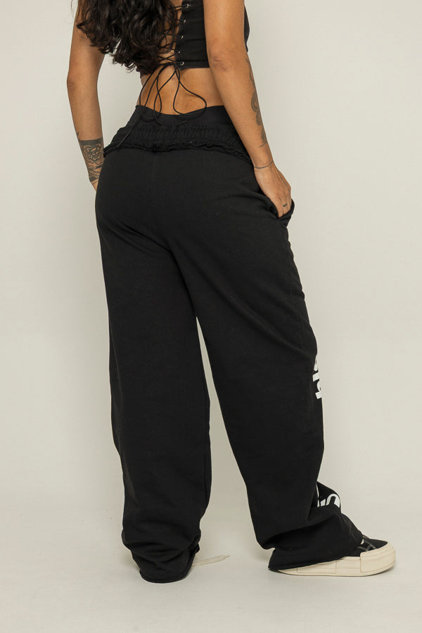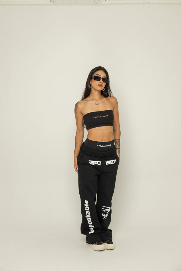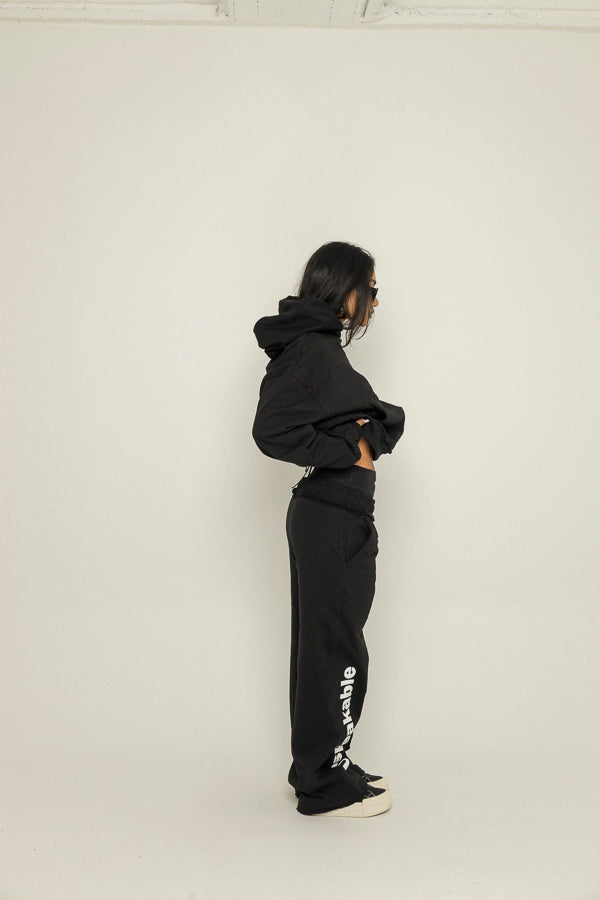 Sudadera unisex color negro , bota recta, tiene cintura enresortada para un ajuste cómodo. Tiene cordón ajustable en cintura.
