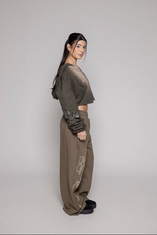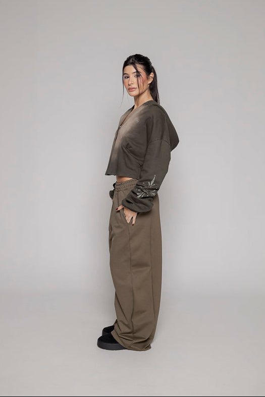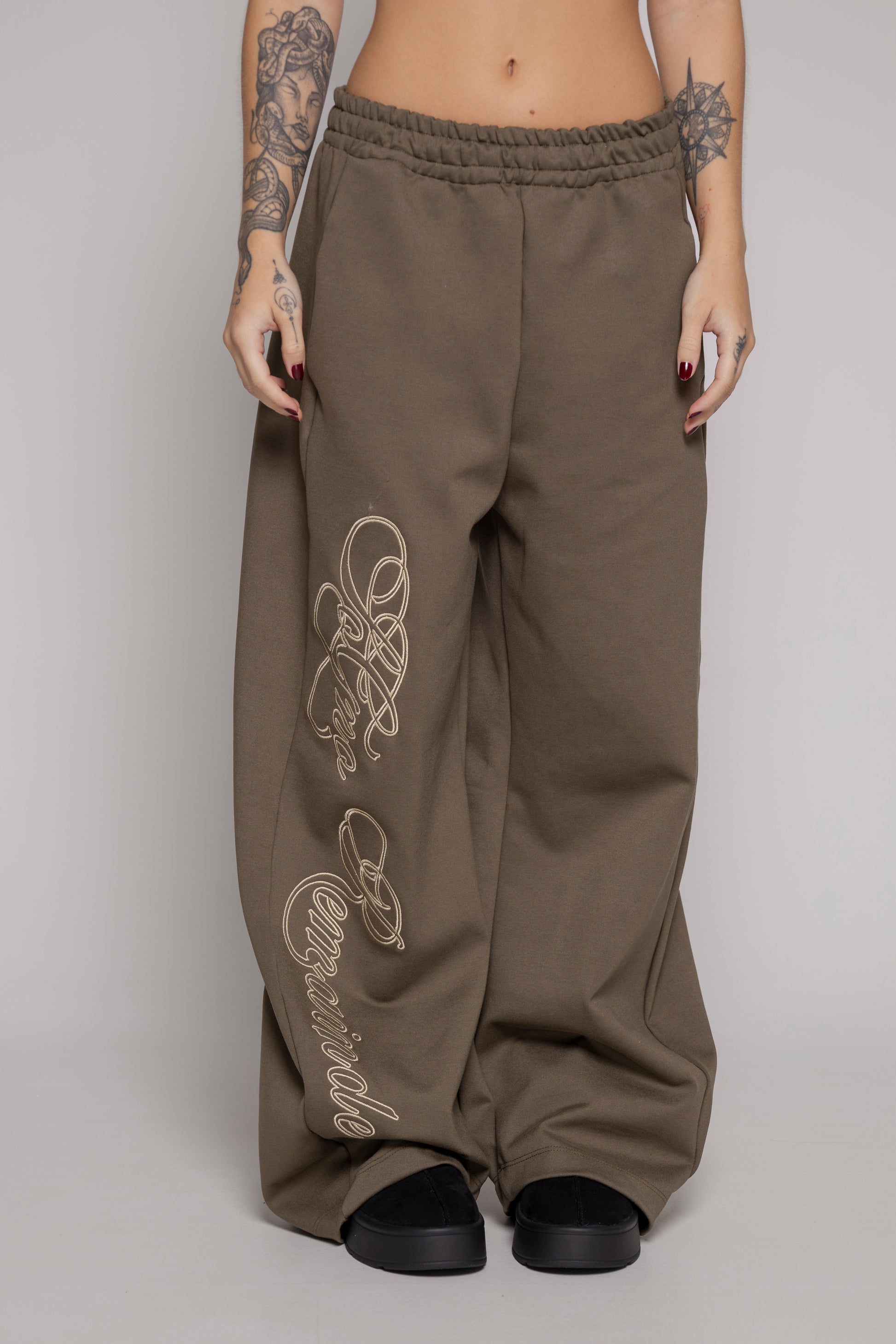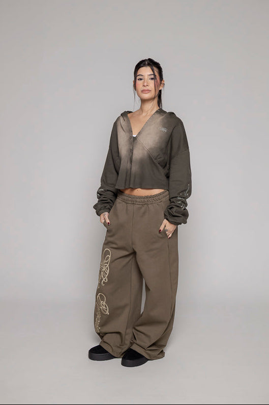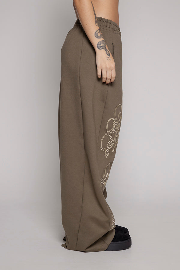 Este jogger baggy verde con silueta femenina trae una bota recta súper cómoda y un bordado frontal que le da estilo. La cintura elástica con cordón ajustable asegura que te sientas a gusto y con el fit perfecto todo el día.