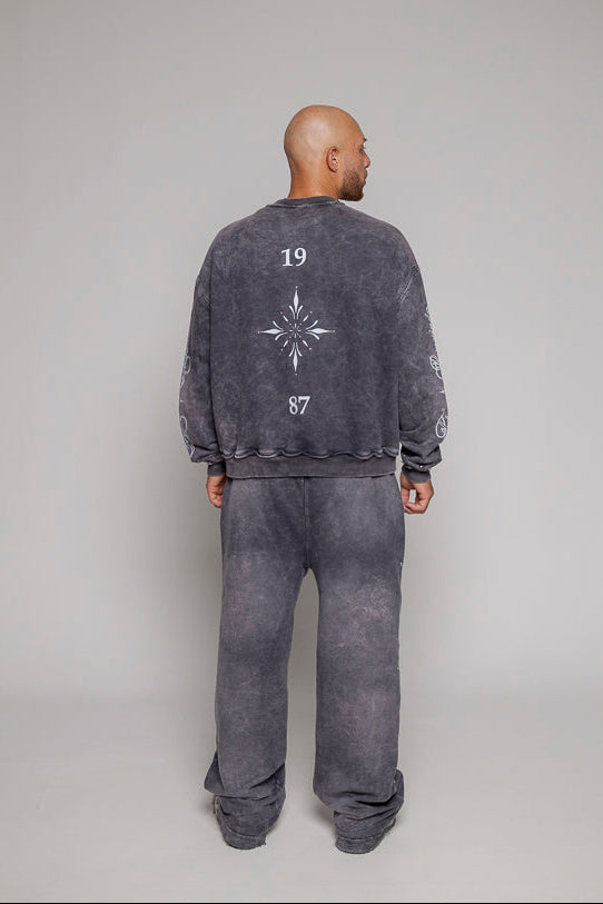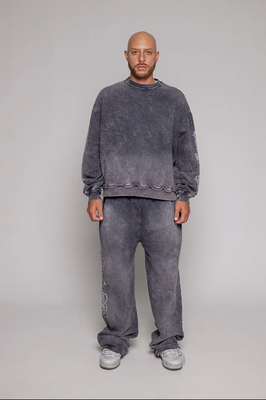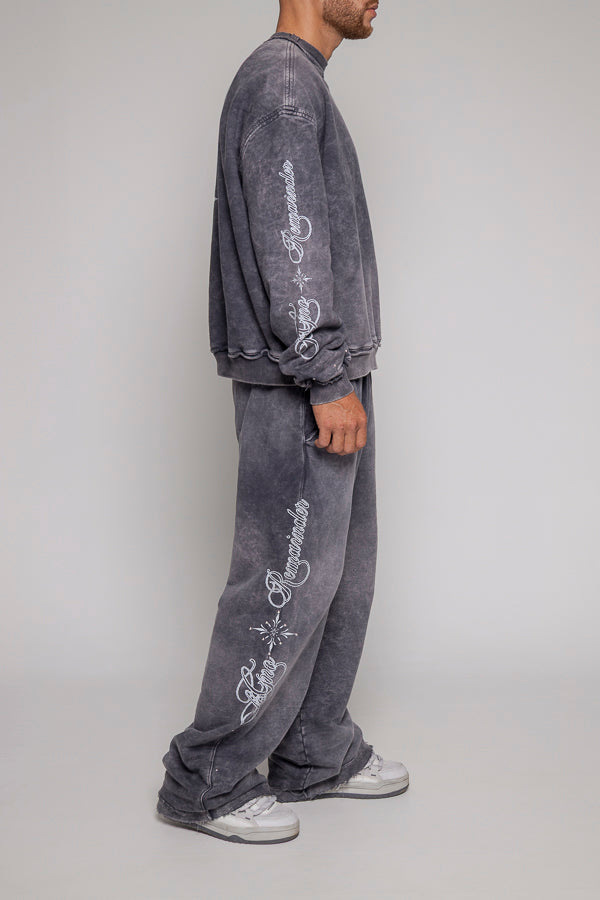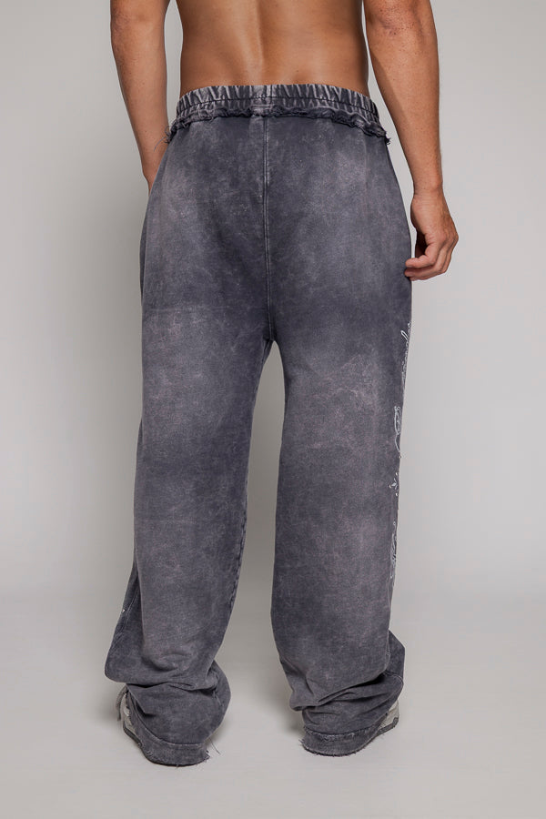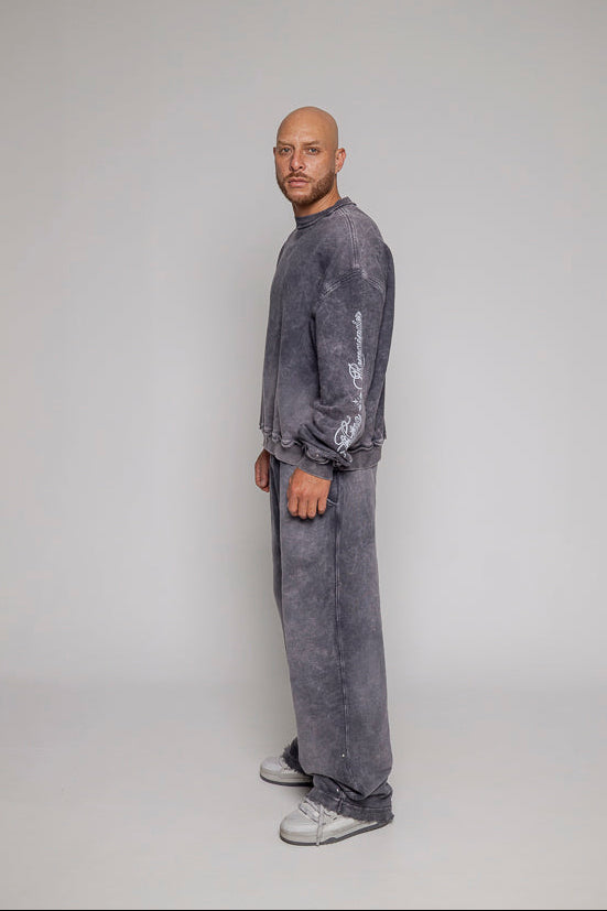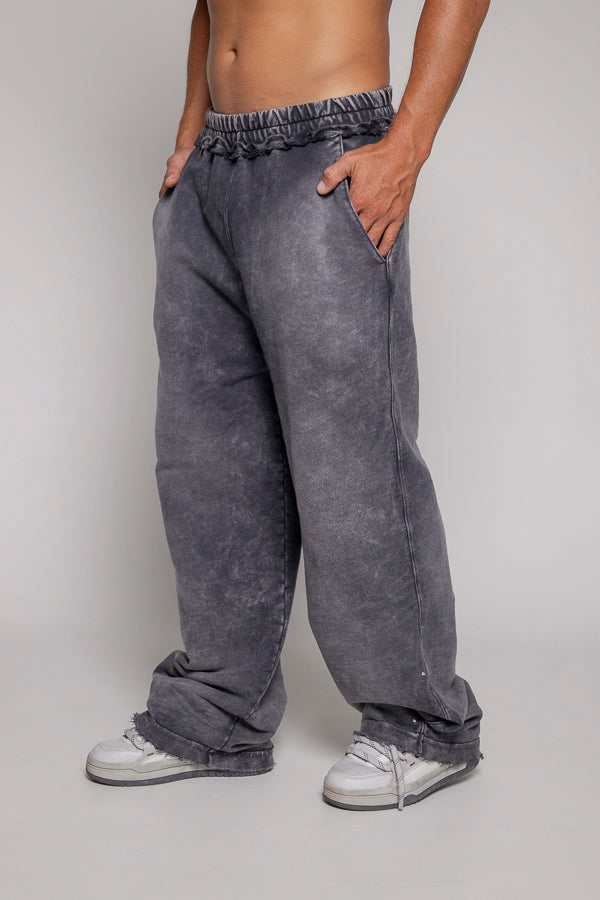 Sudadera unisex color gris desgastado en lavanderia , bota recta, tiene cintura enresortada para un ajuste cómodo. Tiene cordón ajustable en cintura.