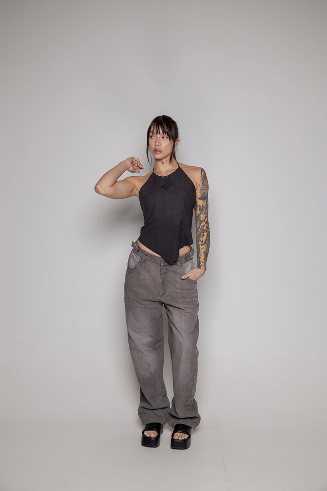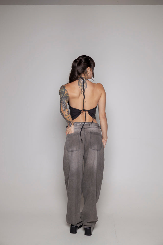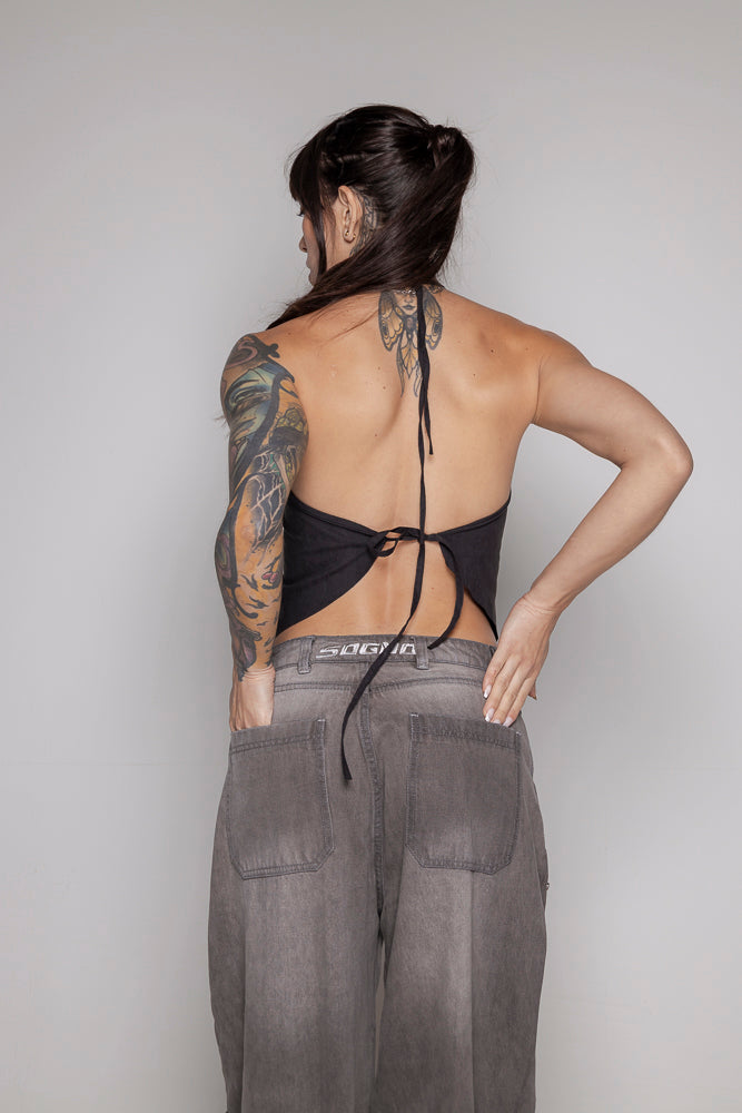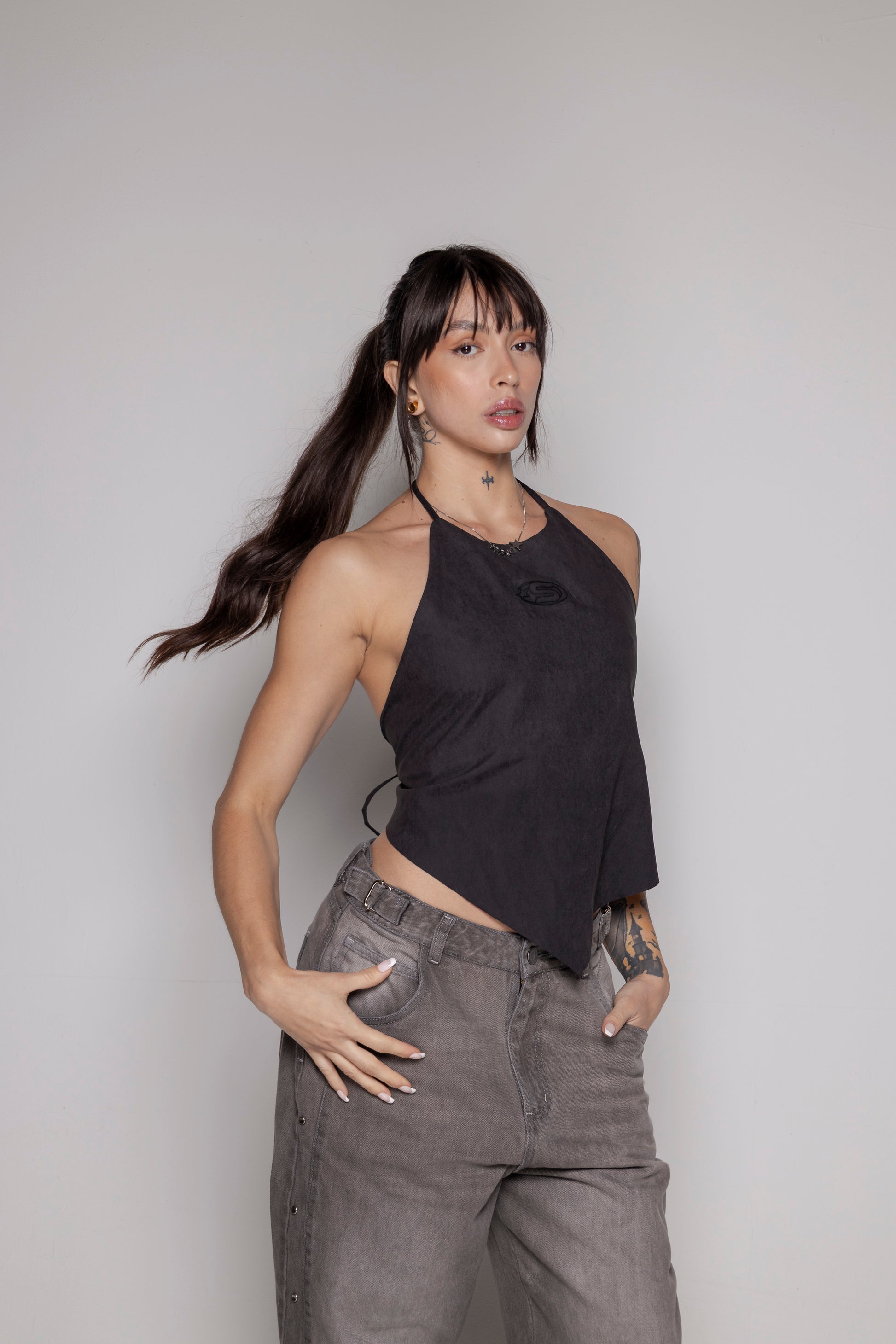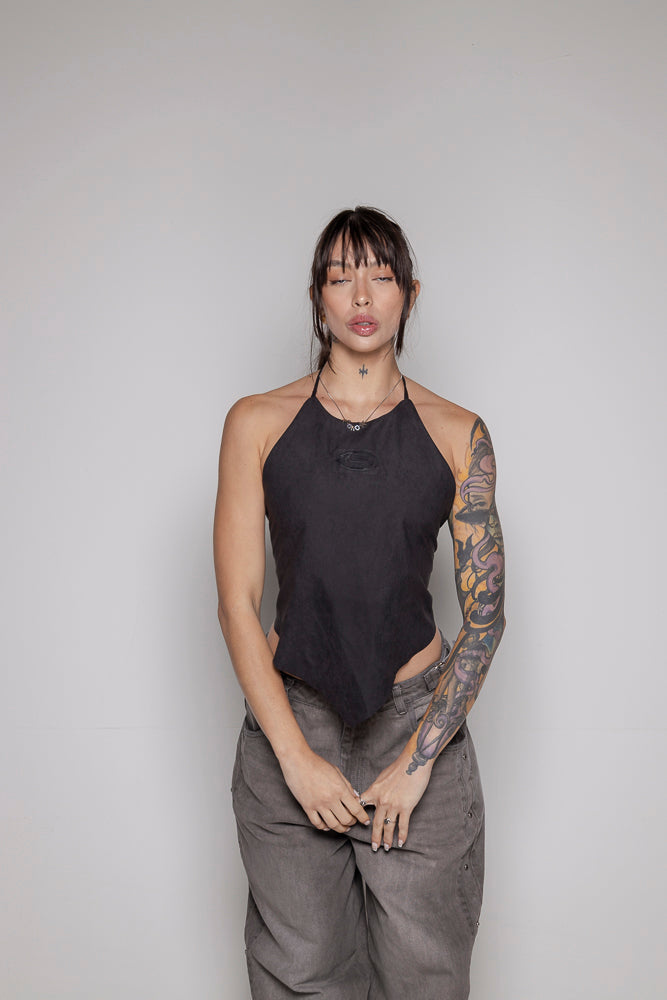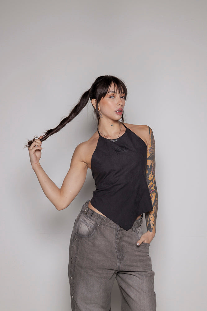 Top tipo pañoleta en tejido plano diseñado con cuello tipo halter y escote en espalda con ajuste, este top es perfecto para combinar jeans y pantalones.